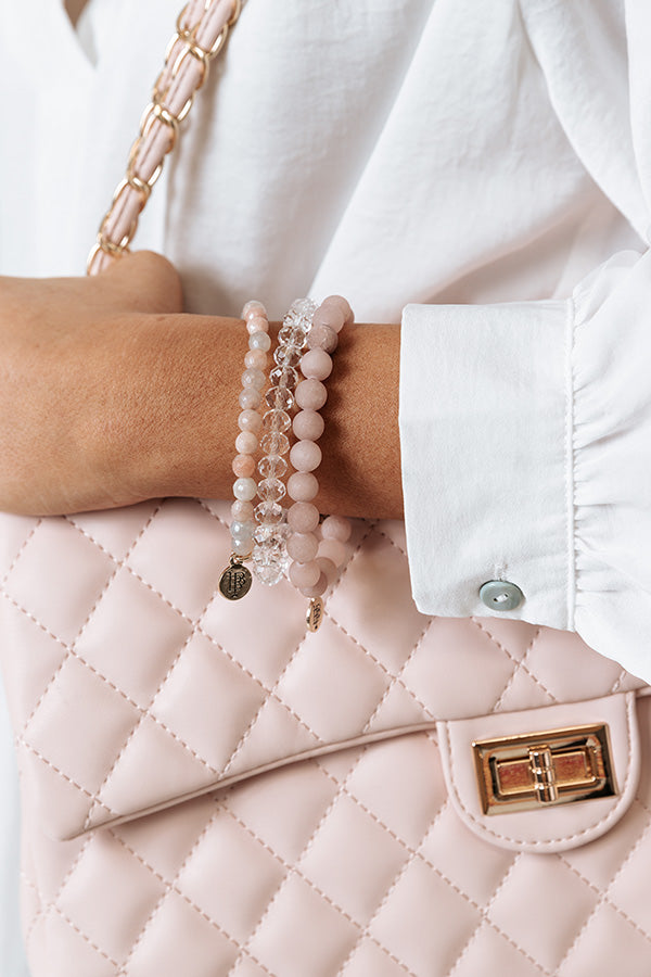 The "Katie Stretchy Bracelet" is sold as a set of three featuring neutral beaded stacks!