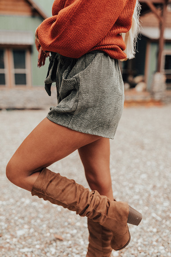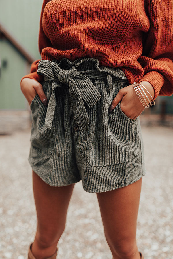 The Kirklynn High Waist Corduroy Shorts In Olive