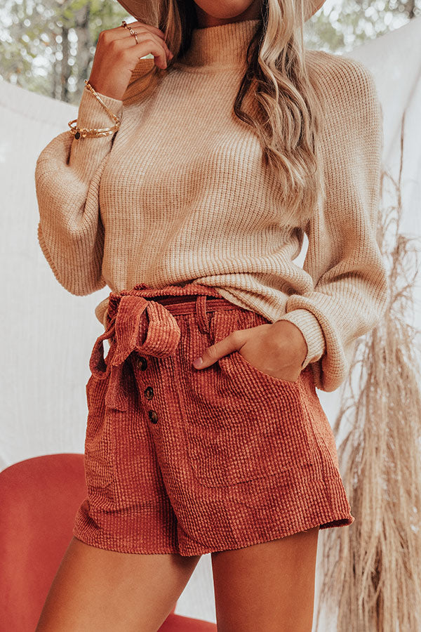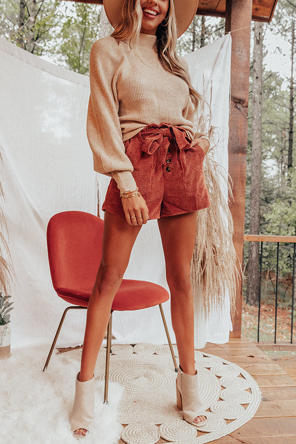 The Kirklynn High Waist Corduroy Shorts In Rust