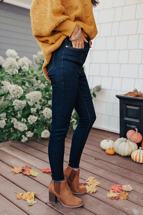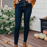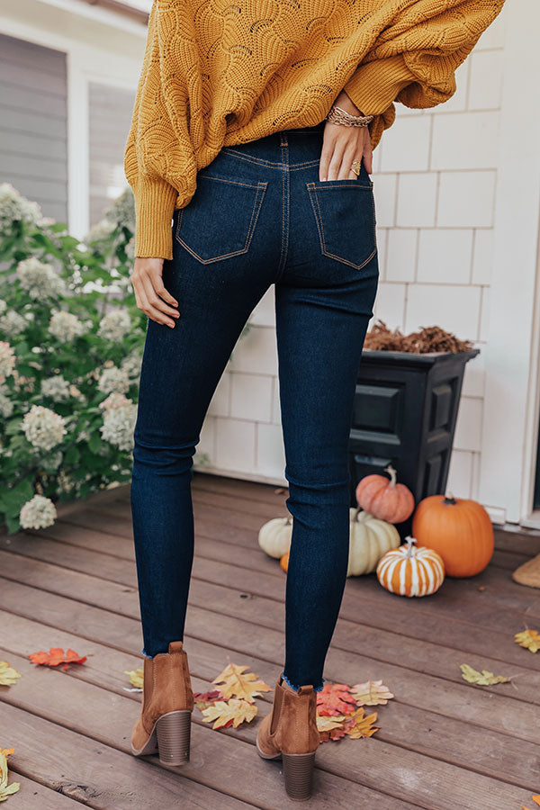 Life is more than just fitting into your jeans, but we believe you will LOVE the look and feel of our adorable "Kora" skinnies featuring lightweight dark wash denim material, four pocket cuts, a four button closure, a high waistline with belt loops, and a form fitting silhouette that falls into ankle-length hemlines that can be cuffed!