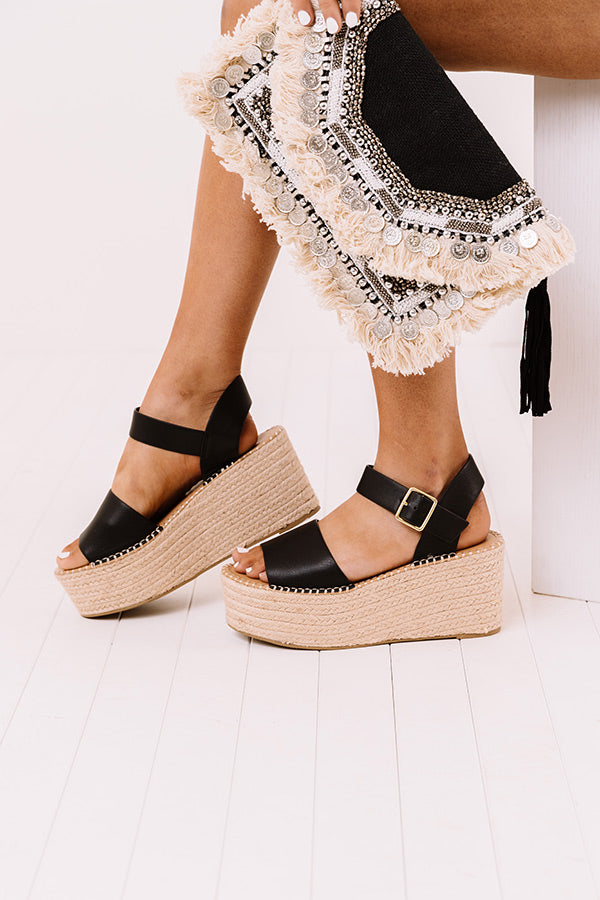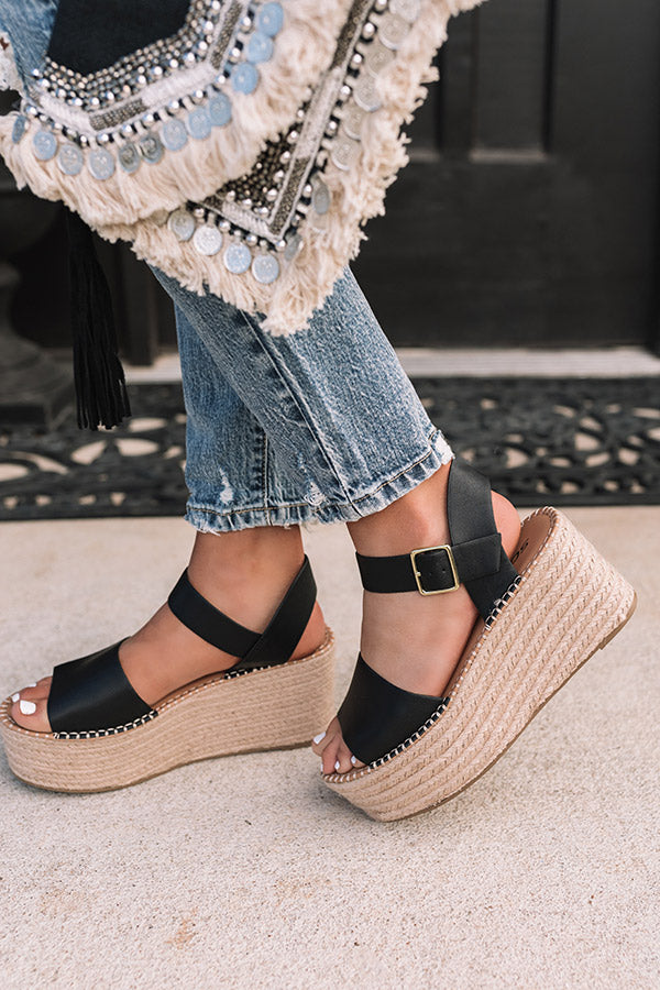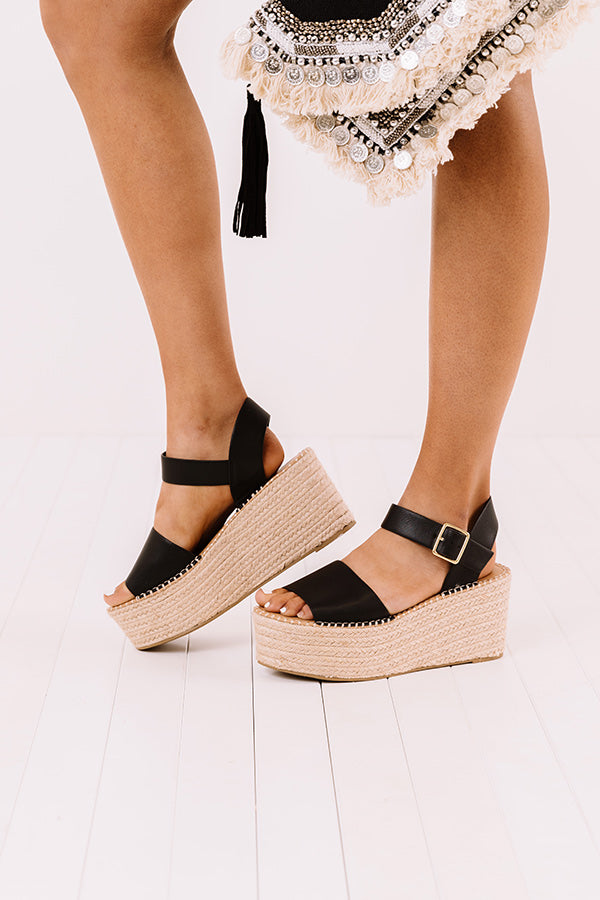Strap in and welcome the warmer weather in style with our trendy black 'Larissa Espadrille' featuring a wide over-the-foot ankle strap, a lifted 3.5-inch sole, a rounded open toe, and an open heel with a buckled ankle strap! This espadrille runs more true to size.