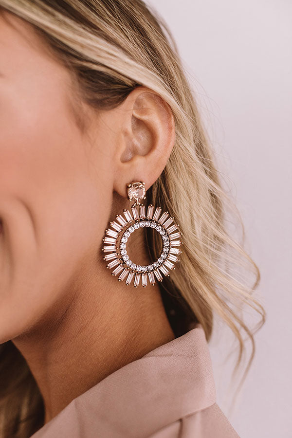 You will look like you have "the latest in luxury" when you accessorize with these rose gold statement earrings featuring circle studs and faux diamond clustered hoops! Measurements