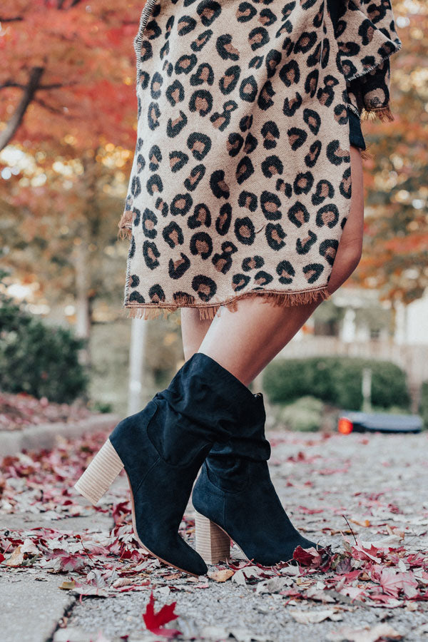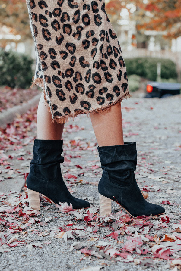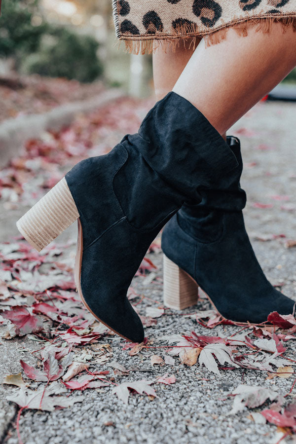 Shoes are the finishing touch to any outfit, so treat yourself to our eye-catching little black "Laurette" booties featuring sleek material, a relaxed over the ankle fit, 3.5-inch block heels, and rounded closed toes!