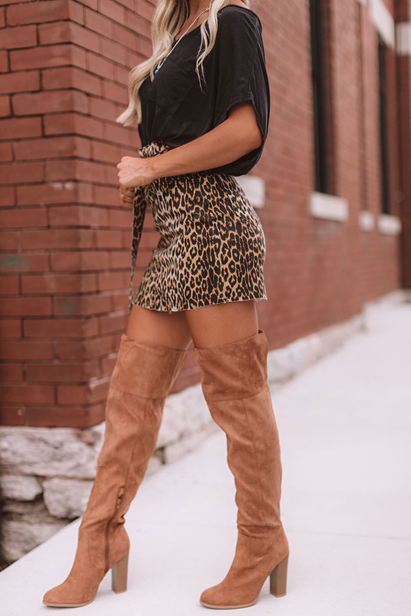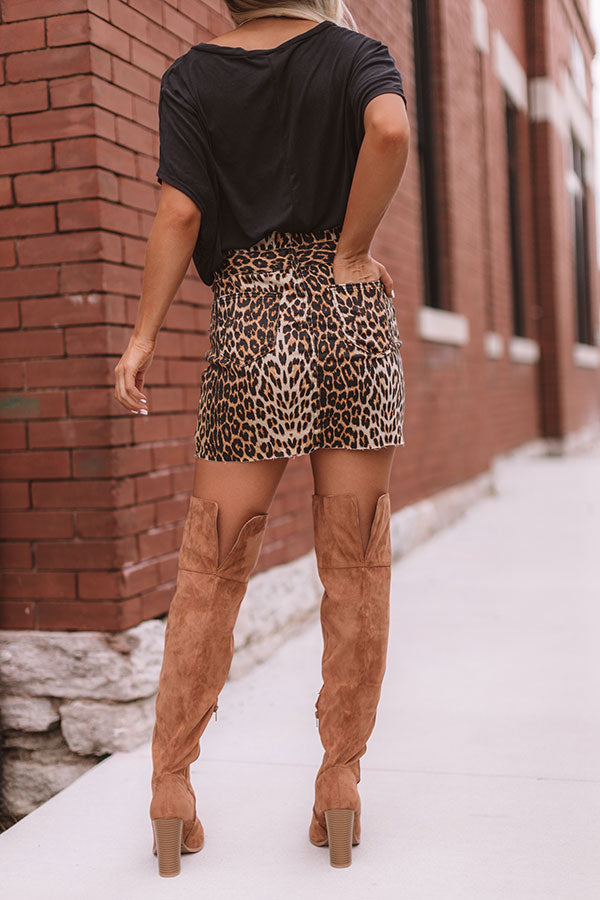 Stay fierce in "The Layla" skirt featuring a bold leopard print, a high waist, an upper-thigh length straight hemline, two front and two back pockets, belt loops with a long buckled belt, a stretchy fit, and a hidden zipper with a two snap closure! This piece can be styled for the fall with a simple black tee and a neutral over-the-knee boot and faux suede hat, or you can wear it during the summer with our "Beauty Guru Shift Tank in White," a black headband, and "The Delaney Sneaker in Leopard!" Measurements