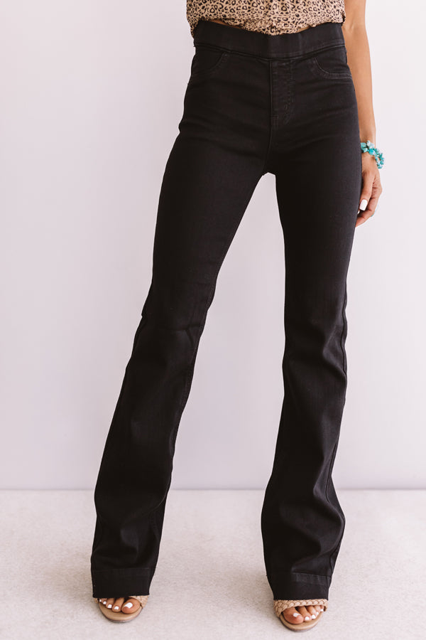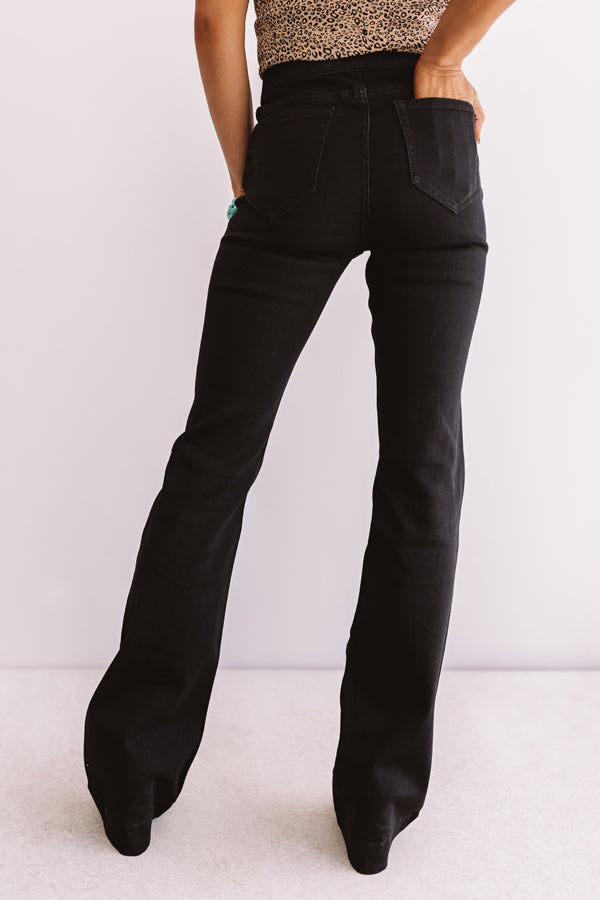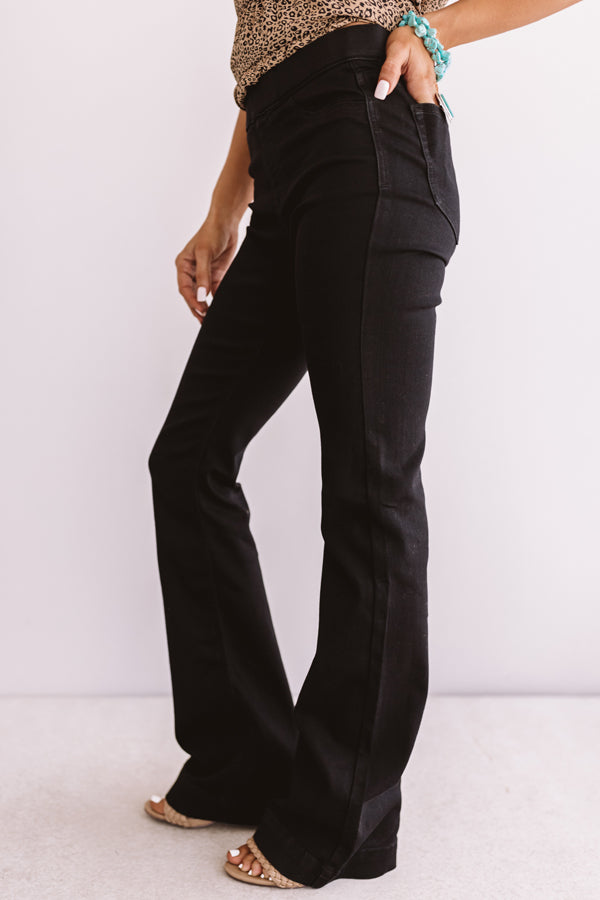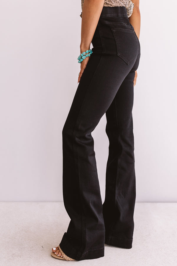 You are sure to love "The Leah" bottoms featuring black denim, a wide banded midrise waist, four pocket cuts, and stretchy, figure flattering fit that leads into a trendy and flared raw hem cut! These trendy bottoms will take you from season to season when you wear with your favorite open toed heel and tank top in the summer and with booties and a sweater in the fall!
