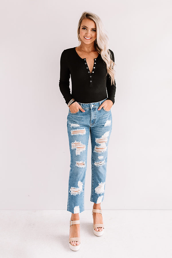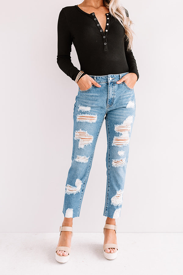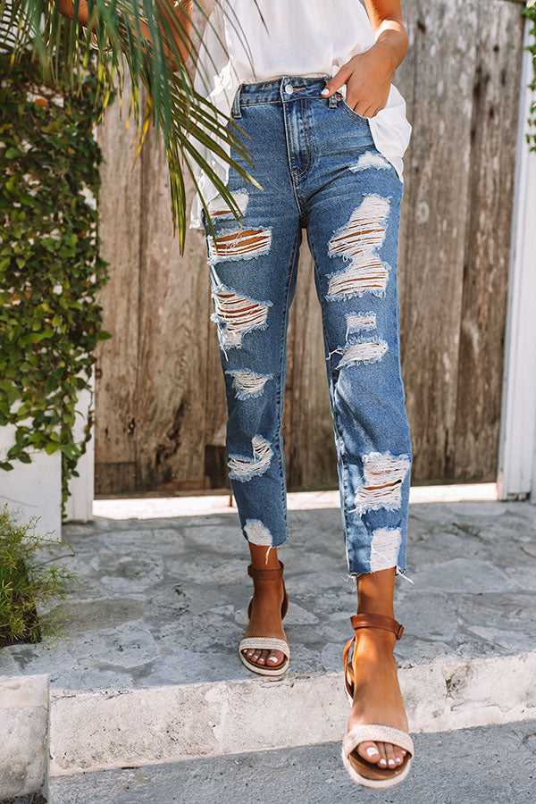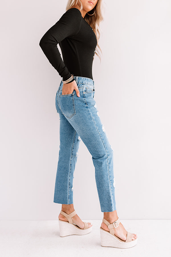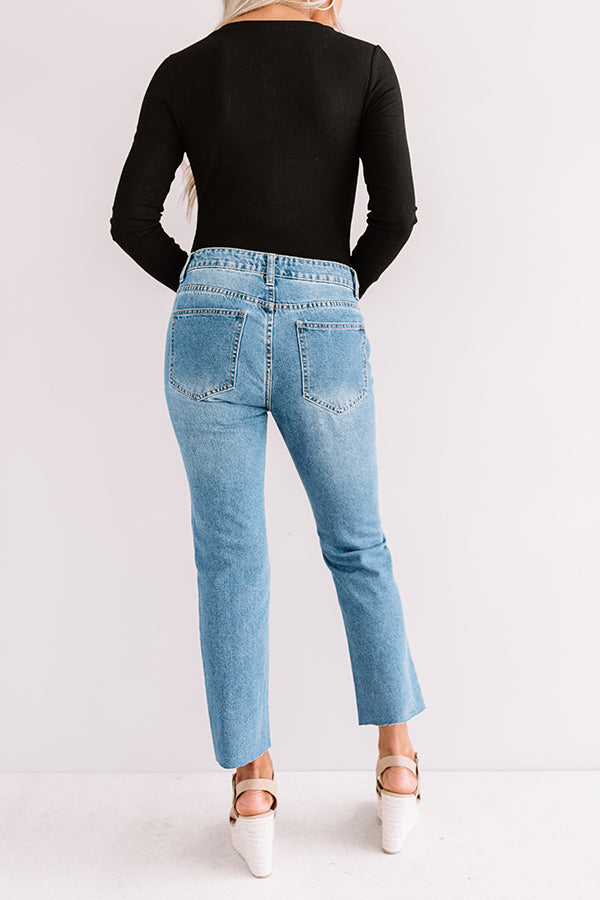 Life is more than just fitting into your jeans, but we believe you will LOVE the feel and look of "The Leslie" skinnies with their high waist fit, ultra distressed detailing, medium wash color, relaxed silhouette that falls into raw cut cropped ankle hems that can be rolled, five pocket cuts, belt loops, and a hidden zip fly with a button closure! These trendy bottoms will take your from season to season when you wear with your favorite open toed heel and tank top in the summer and with booties and a sweater in the fall!