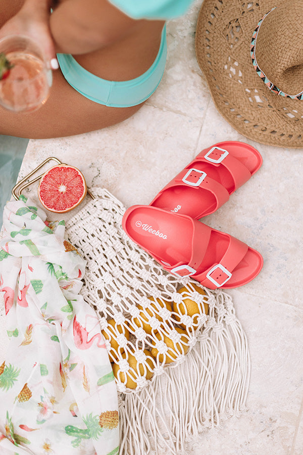 These slip-on sandals are ideal for wearing to pool! The two large buckles make them adjustable so they fit your feet perfectly!