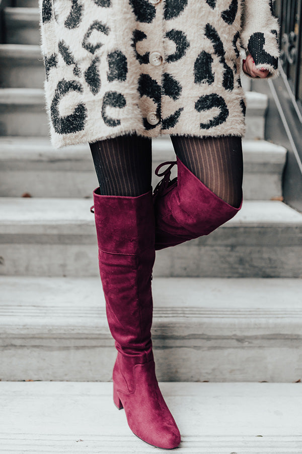 The London Faux Suede Over The Knee Boot in Merlot