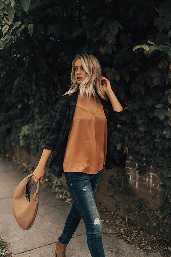 Every woman should have a purse of their own, so treat yourself to this mocha fall tote featuring a smooth textured rounded pouch with two wrapped handles!