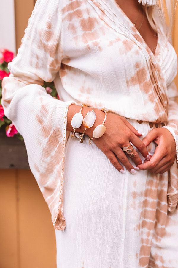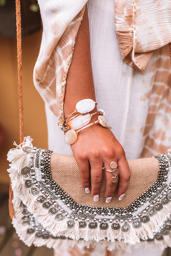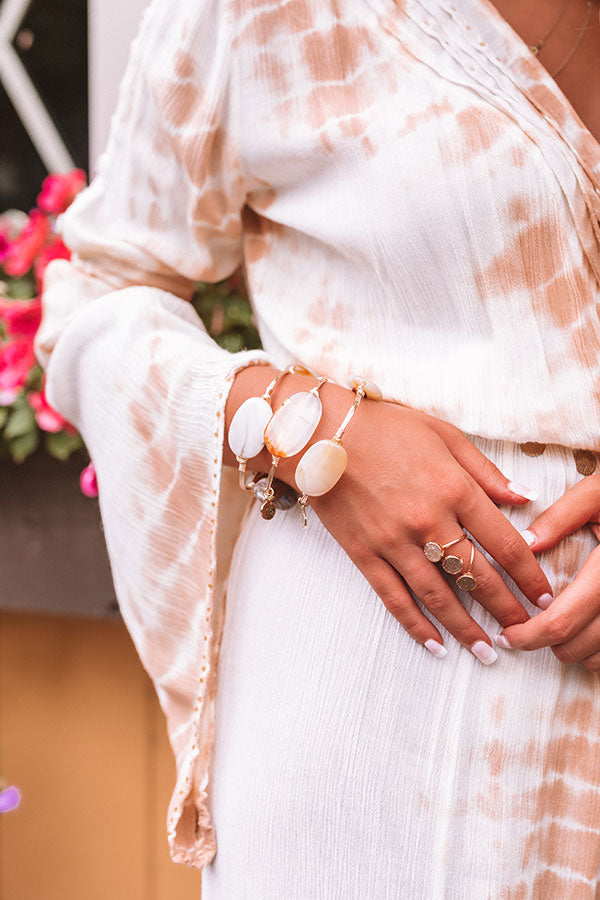 The "Luke" bracelet features a gold plated copper wire-wrapped bangle adorned with three neutral stones! Due to the use of natural stones, stones may vary in size, shape or color.
