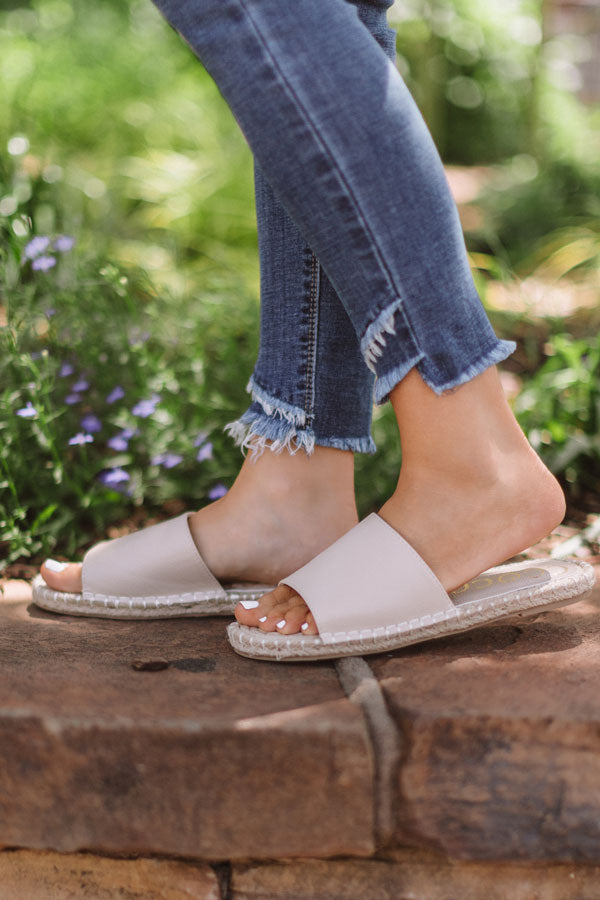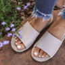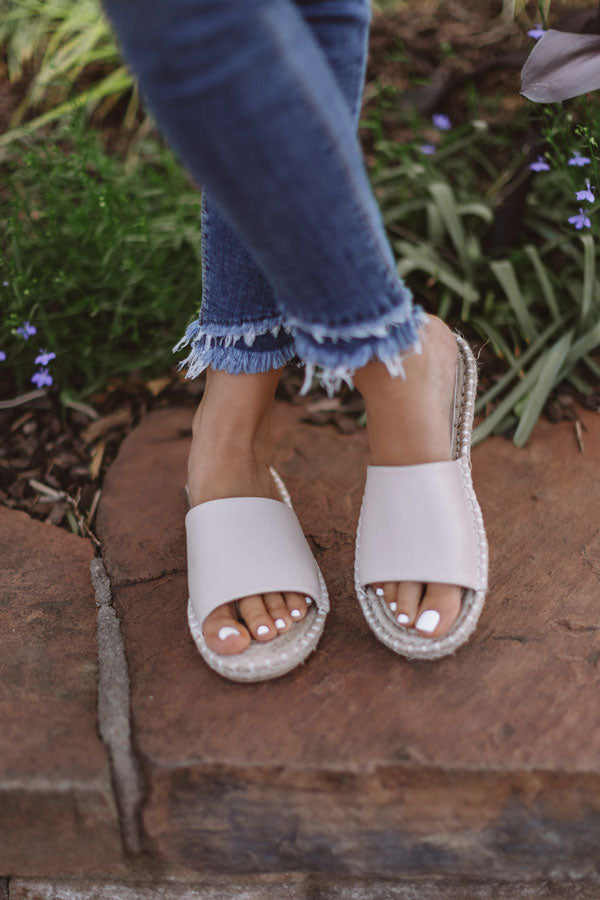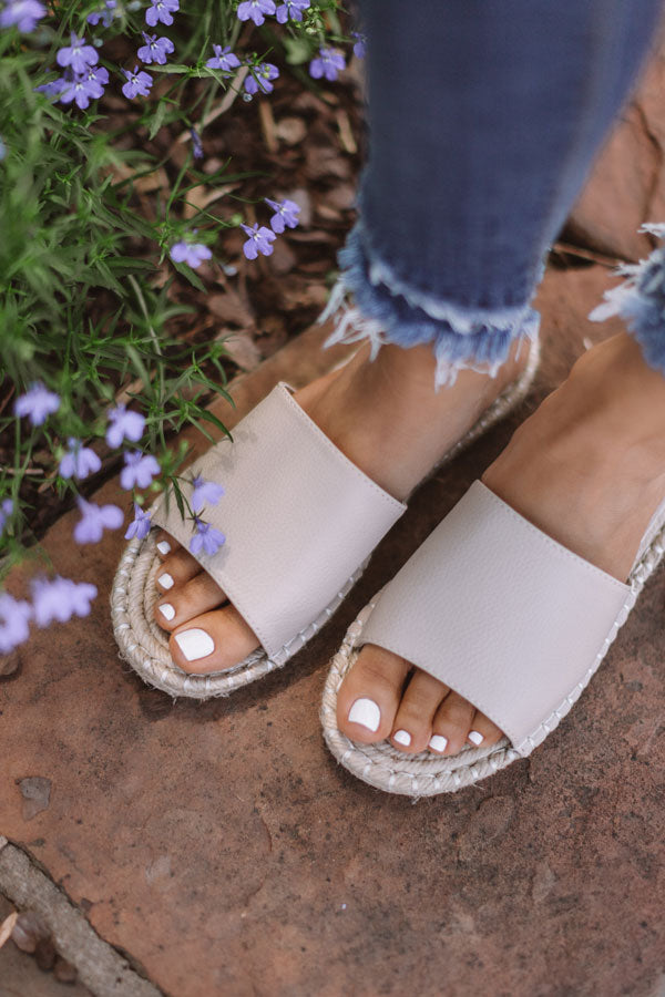 Live like there is no tomorrow in these simple faux leather sandals with their single wide strap, thick stitching , and textured sole!