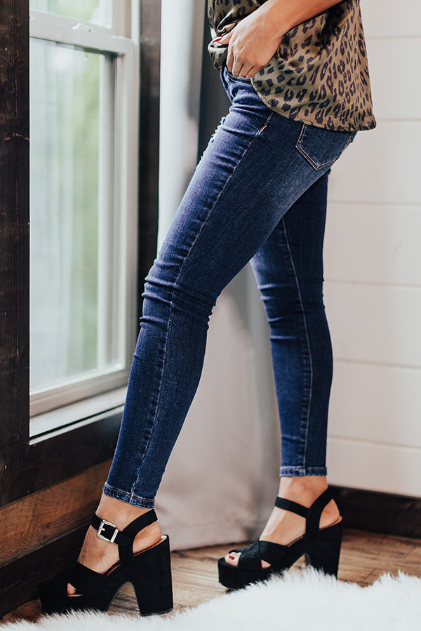 Life is more than just fitting into your jeans, but we believe you will LOVE the look and feel of our adorable "Maisy" skinnies featuring lightweight dark wash denim material with distressed detailing and subtle accent fading, belt loops, four pocket cuts, a hidden zip fly with a button closure, and a form fitting silhouette that falls into ankle-length hemlines that can be cuffed!