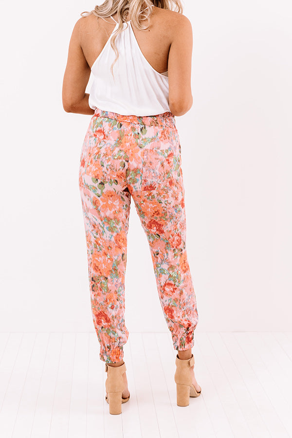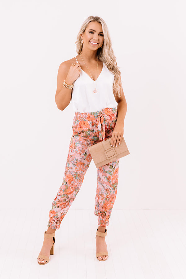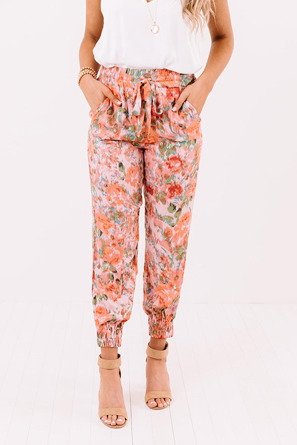 Strut into spring looking fabulous in our eye-catching 'Marilla' joggers featuring lightweight material patterned with a colorful floral print, a high waistline with a tie belt closure, accent side pockets, and a relaxed pants silhouette that tapers into fitted ankle-length hemlines! Measurements
