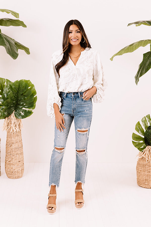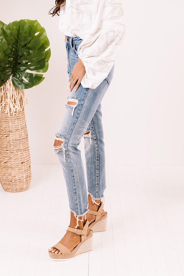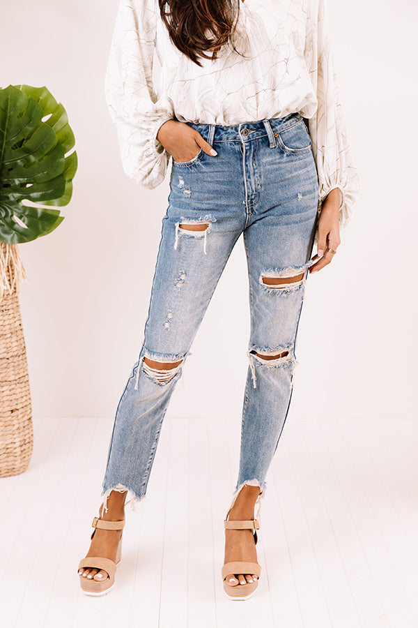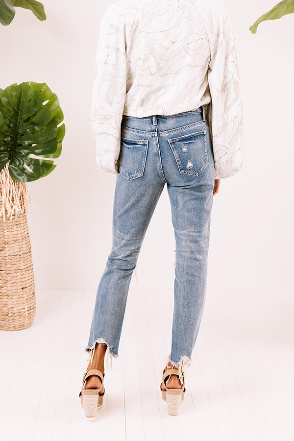 Life is more than just fitting into your jeans, but we believe you will LOVE the look and feel of our adorable 'Maya' skinnies featuring lightweight medium wash denim material with distressed detailing and subtle accent fading, four pocket cuts, a hidden zip fly with a button closure, a high waistline with belt loops, and a relaxed silhouette that falls into frayed ankle-length hemlines! These jeans run extremely small, for example if you wear a 3, we recommend sizing up to a 7.