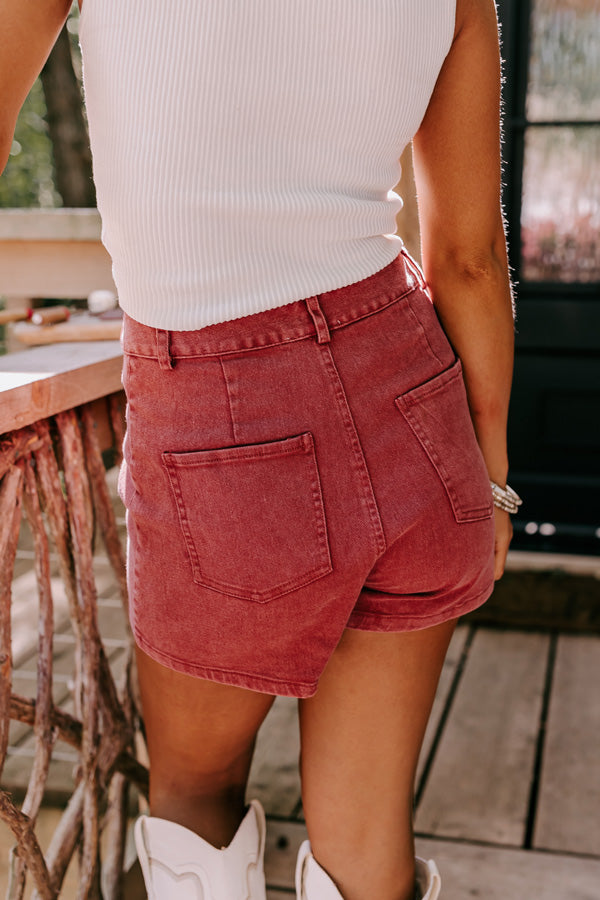 The Meena Denim Skort In Aurora Red