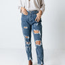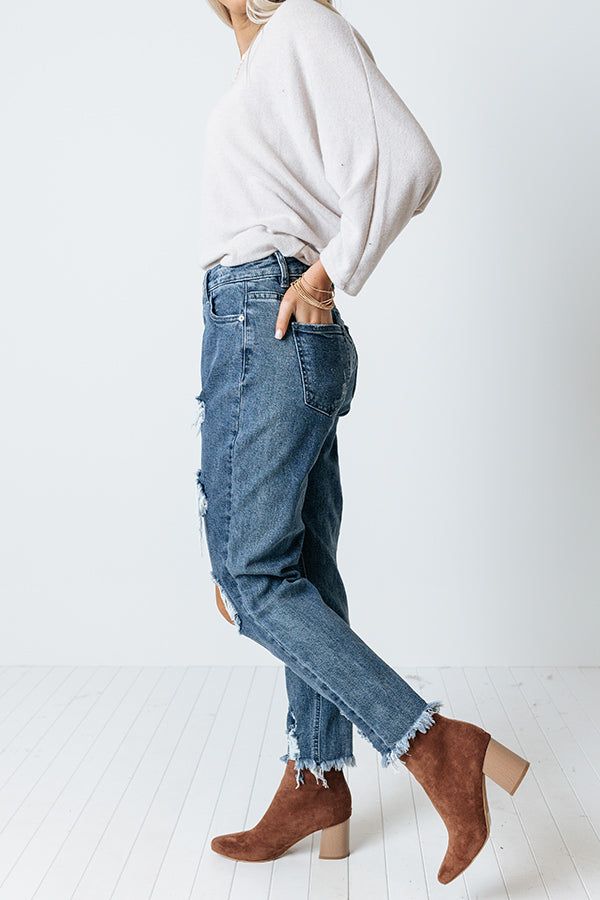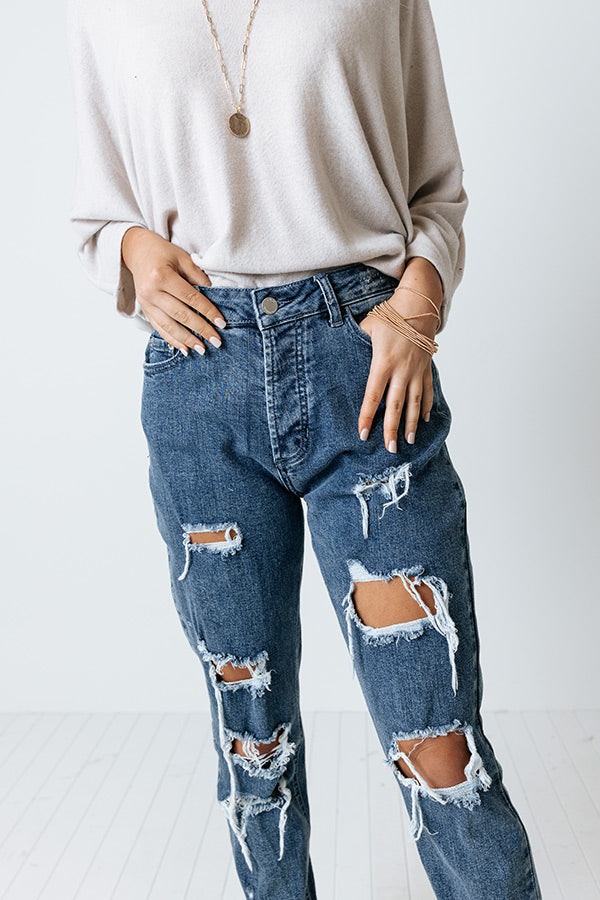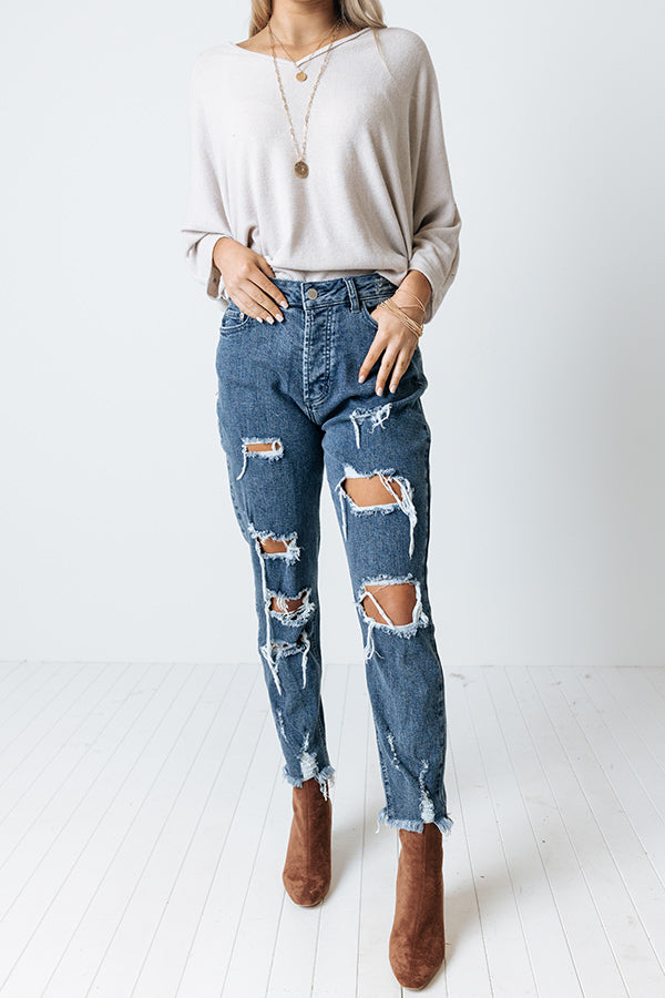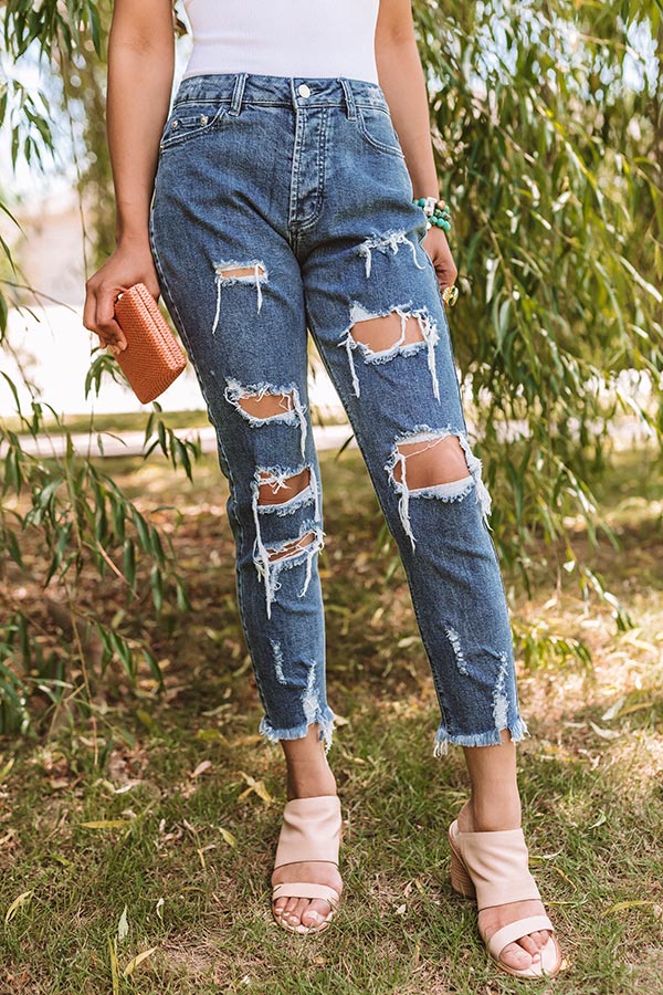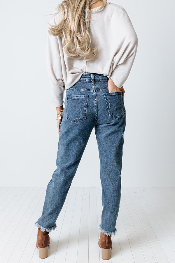Life is more than just fitting into your jeans, but we believe you will LOVE the look and feel of our "Mindi" skinnies featuring lightweight dark wash denim material patterned with ultra distressed detailing and accent fading, a high waistline with belt loops, four pocket cuts, a hidden zip fly with a button closure, and a relaxed silhouette that falls into frayed ankle-length hemlines that can be cuffed!