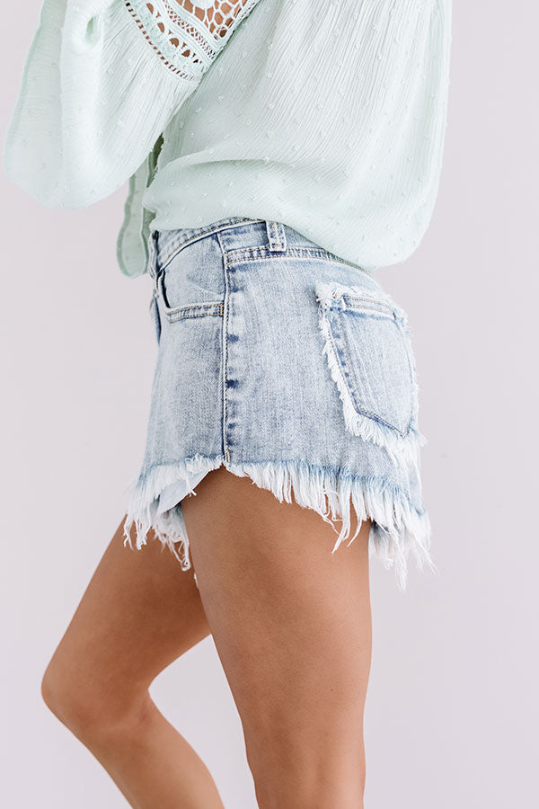 The adorable "Mindy" shorts feature lightweight stretchy denim material, subtle faded detailing, a high waist fit, a hidden zip fly with a button closure, belt loops, five pocket cuts, a light wash color, and a relaxed silhouette that falls into raw cut upper thigh length length hemlines with ultra frayed trim! Style with your favorite basic tee, tank, or lightweight sweater, an oversized tote or a crossbody, sunnies, and some neutral wedges or colored sandals for the most relaxed summer look yet!