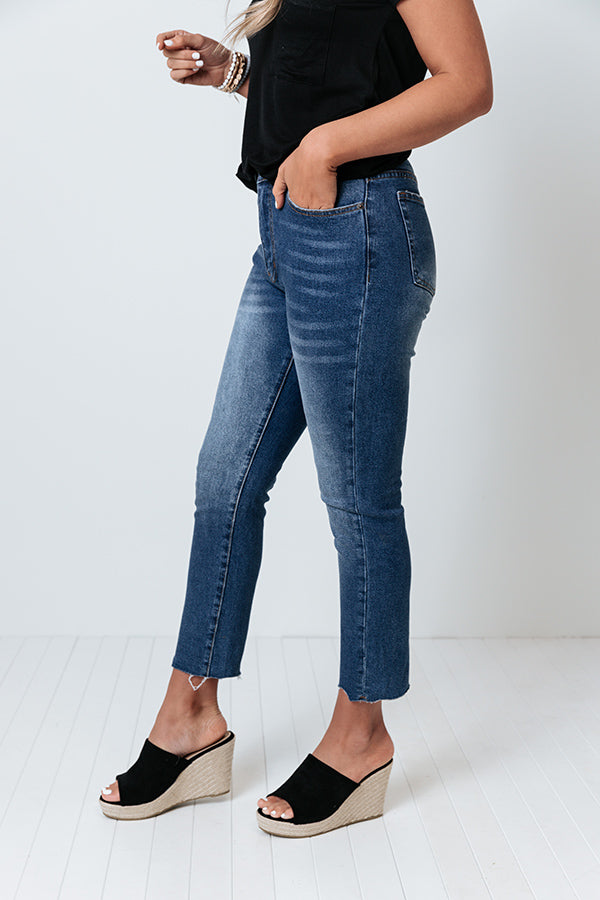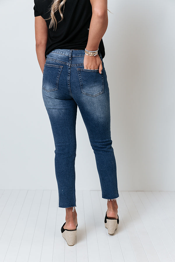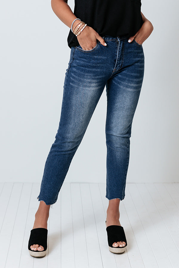 Life is more than just fitting into your jeans, but we believe you will LOVE the look and feel of our 'Minori' skinnies featuring lightweight dark wash denim material with subtle accent fading, a high waistline with belt loops, a classic five pocket cut, a hidden zip fly with a button closure, and a flattering silhouette that falls straight into raw-cut ankle-length hemlines!