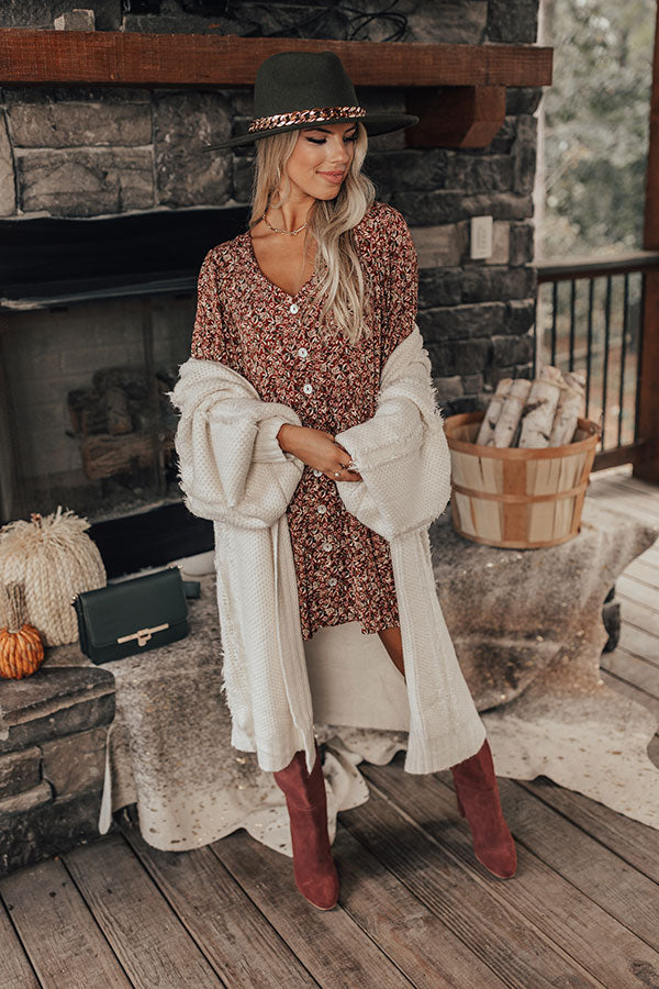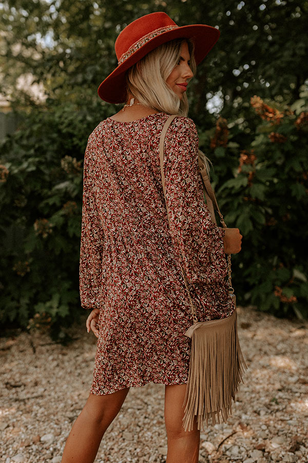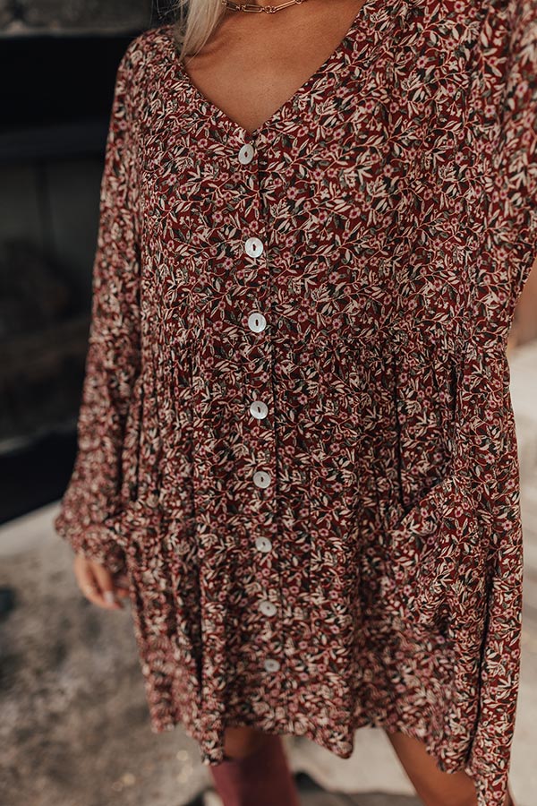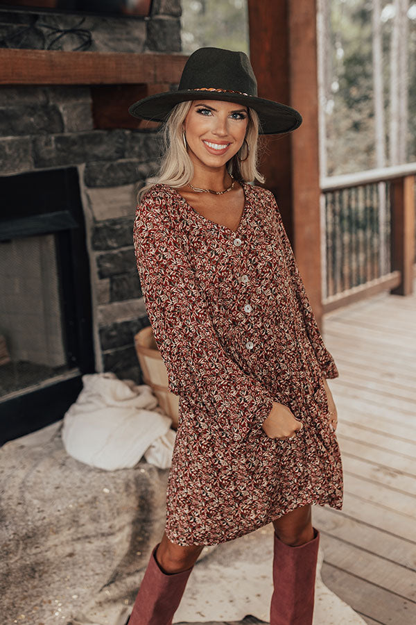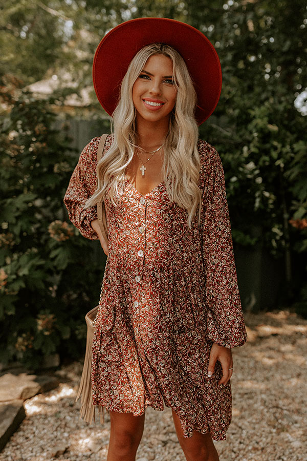 We have no doubt you will turn heads when you arrive in our adorable rust colored 'Montana' shift dress featuring lightweight and flowy material patterned with a natural, fuchsia, and sage hued floral print, a button down front with a v-cut neckline, long oversized bubble sleeves, low hidden side pockets, and a relaxed silhouette that falls into a straight mid-thigh length hemline!