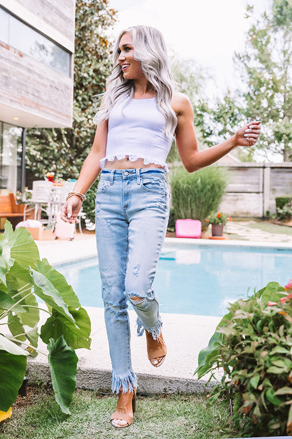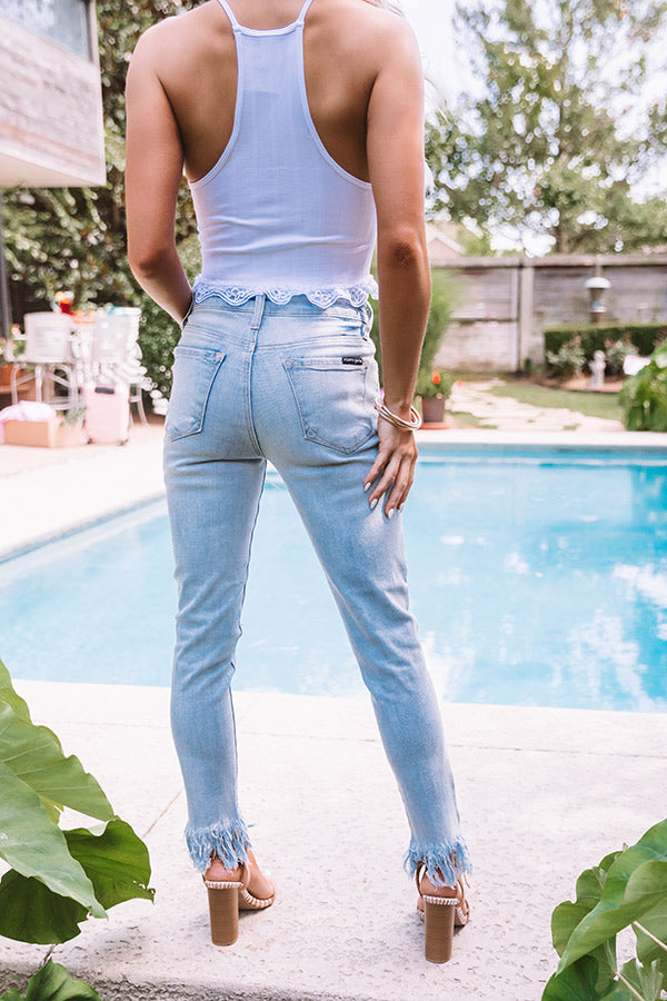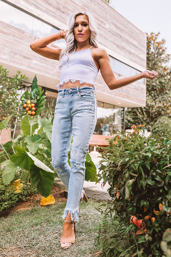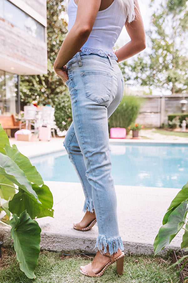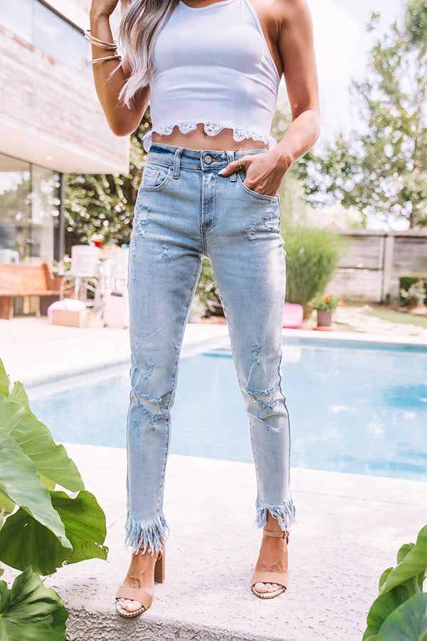 Life is more than just fitting into your jeans, but we believe you will LOVE the look and feel of our "Montana" skinnies featuring lightweight light wash denim material patterned with distressed detailing and accent fading, a midrise waistline with belt loops, four pocket cuts, a hidden zip fly with a button closure, and a relaxed silhouette that falls into frayed ankle-length hemlines that can be cuffed! These trendy bottoms will take you from season to season when you wear with your favorite open toed heel, sunnies, and tank top in the summer and with booties, a faux suede hat, and a sweater in the fall! Measurements