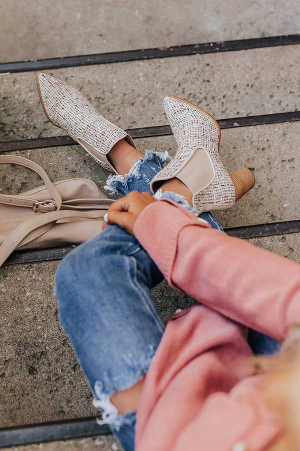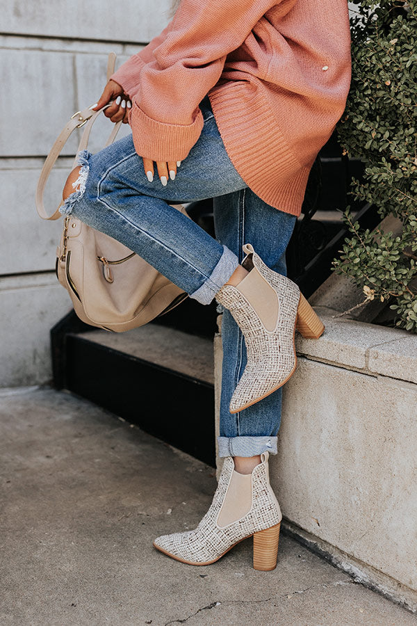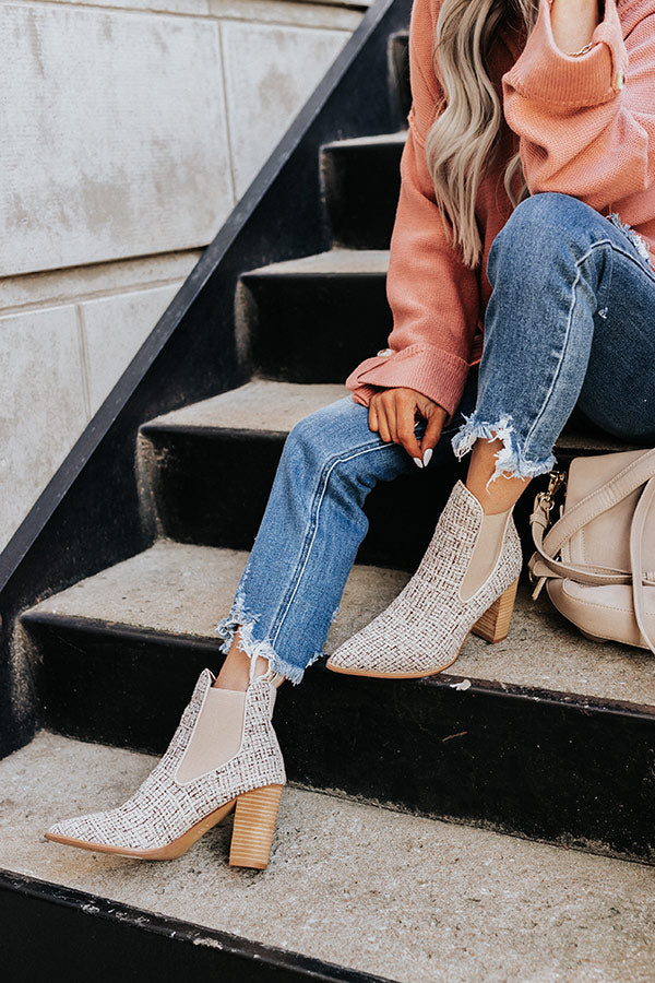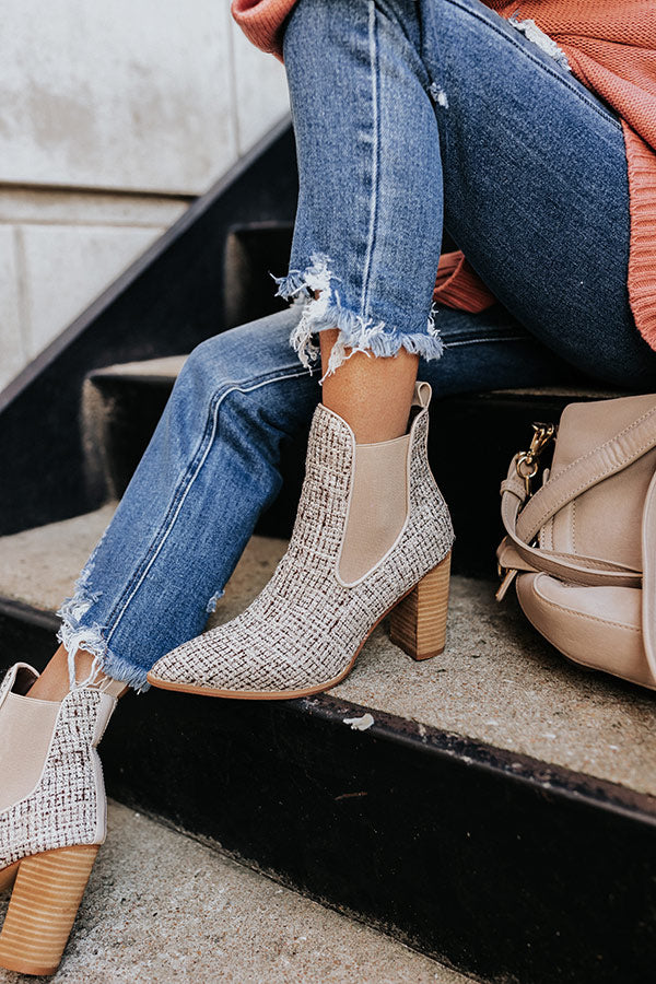 Keep it classy in our stunning 'Navarre' boot featuring chic tweed material with elastic panels on the sides for additional comfort, a 3.5-inch block heel, a pointed closed toe, and a lightweight above-the-ankle slip-on silhouette! This boot runs more true to size.
