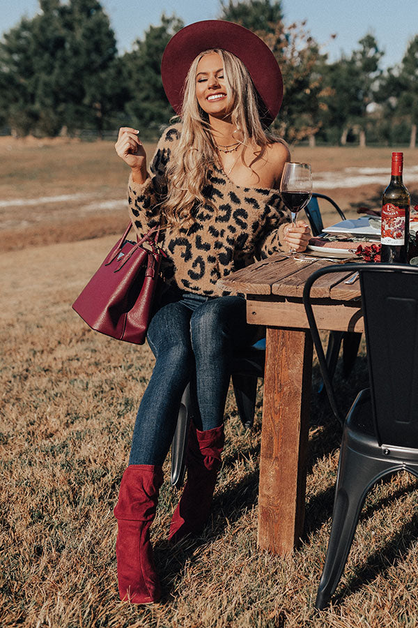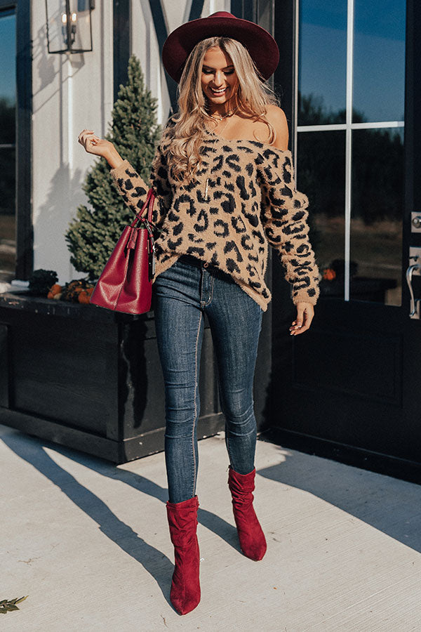 Slay everyday in "The New Manhattan" sweater featuring lightweight tight knit material patterned with a black leopard print, a v-cut neckline that can be worn off one shoulder, long loose sleeves with fitted cuffs, and a relaxed silhouette that falls into a straight hemline! We have styled this chic cold weather piece with some dark wash ankle skinnies and a red boot, tote, and faux suede hat, but you can also wear it with our "Weekend In NYC Ribbed Velour Skirt in Black" with "The Alice Faux Suede Thigh High Boot in Black!" Measurements
