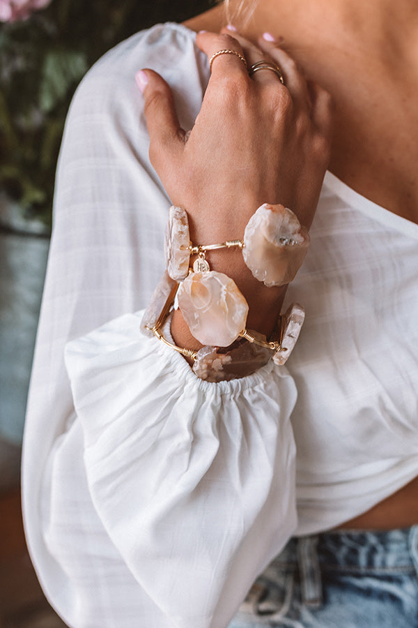 Gold plated copper wire-wrapped bangle adorned with three neutral stones. Stones may vary in size, shape or color.