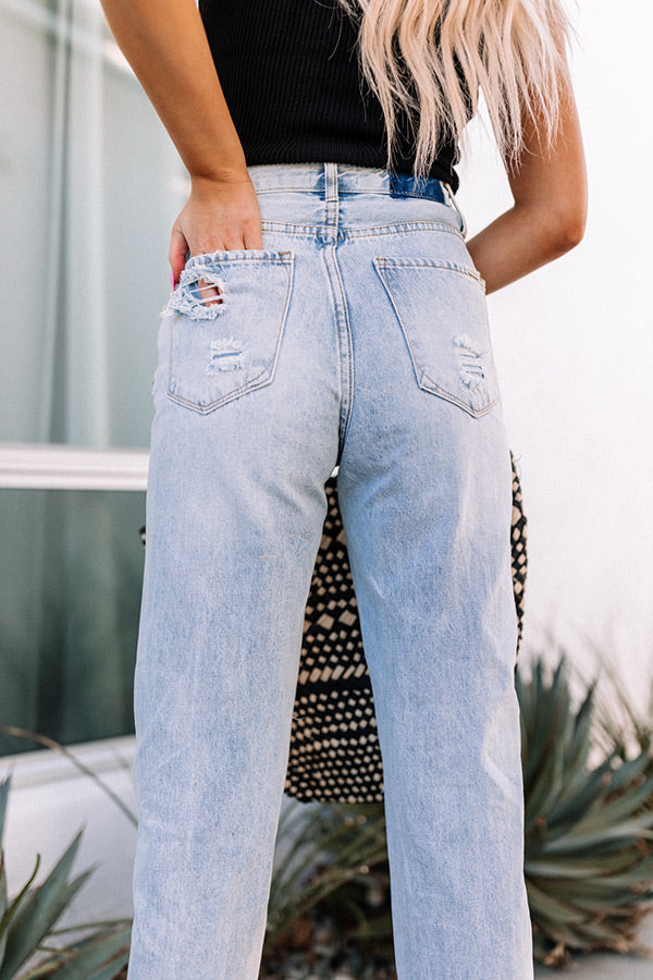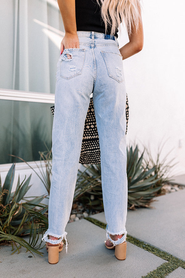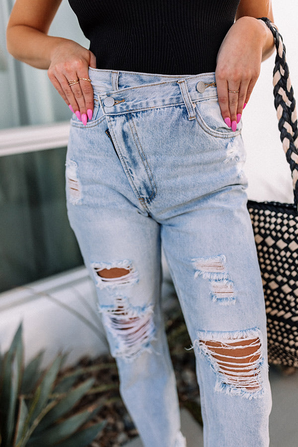 Our trendiest pair of denim yet, the 'Novia' jean features light wash material with accent fading and distressed detailing, a high asymmetrical waistline with belt loops, a classic four pocket cut, and a relaxed silhouette that falls into ankle-length hemlines!
