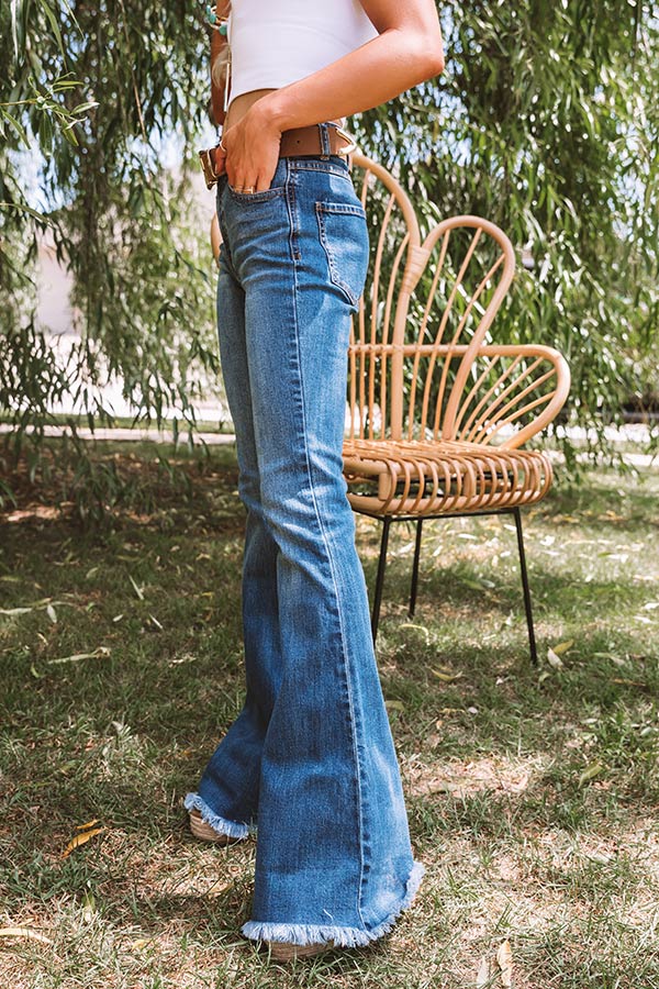 You are sure to love "The Oakyn" pants featuring lightweight dark wash denim material with subtle accent fading, a midrise waist silhouette with belt loops, a hidden zip fly with a button closure, four pocket cuts, and a stretchy figure flattering fit that falls into trendy flared floor-length hemlines with frayed trim detailing! These groovy bottoms will take you from season to season when you wear with your favorite open toed heel and tank top in the summer and with booties and a sweater in the fall!