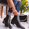 Cinderella is proof that a new pair of shoes can change your life, so don't hesitate to add our striking black "Olette" bootie to your cart with its sleek faux leather material, pointed closed toes, 2-inch block heels, inside zip closures, and lightweight ankle high silhouette! This bootie runs more true to size.