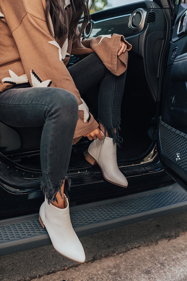Cinderella is proof that a new pair of shoes can change your life, so don't hesitate to add our striking optic white "Olette" bootie to your cart with its sleek faux leather material, pointed closed toes, 2-inch block heels, inside zip closures, and lightweight ankle high silhouette! This bootie runs more true to size.