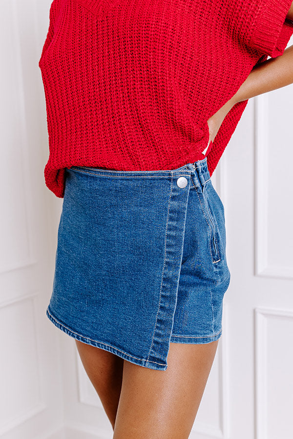 - Embrace casual-chic vibes with this adorable skort! With a trendy wrap style design and a stretchy feel, it is ideal for comfort and style.