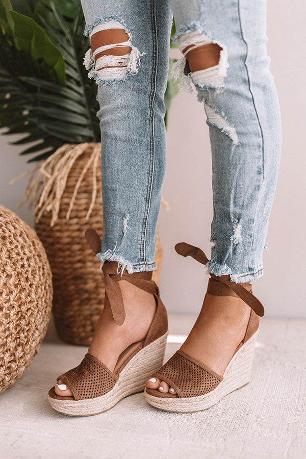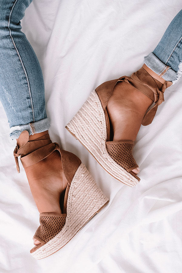 These wedges feature a wide, patterned foot strap and ribbons that wrap around your ankles for a feminine and fashionable shoe that is perfect for wearing with a summer swing dress!