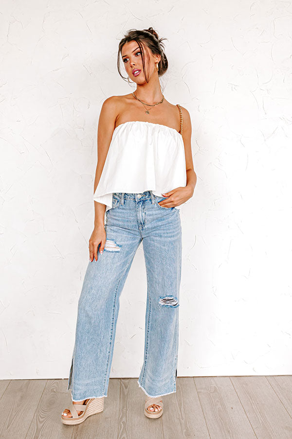 Life's a party, so dress like it in this flirty white tube top featuring lightweight material, a straight and strapless elastic neckline, and a relaxed silhouette that ends in a straight hemline!