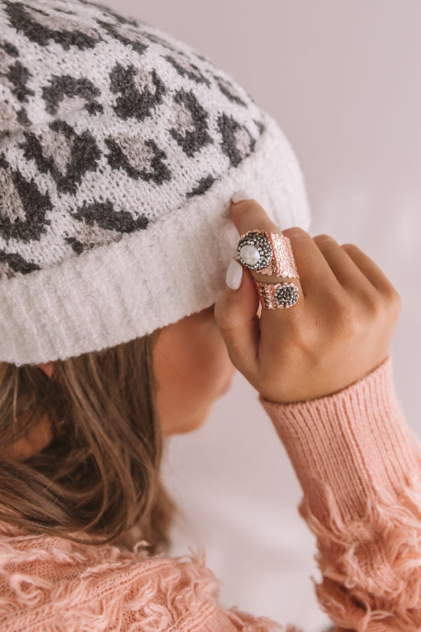 You will undoubtedly wow the crowd when you accessorize with our "Pearl Next Door" statement ring featuring an adjustable and textured twisted bronze band with scalloped edge detailing, a faux pearl surrounded by rhinestones, and a black faux gemstone cluster!