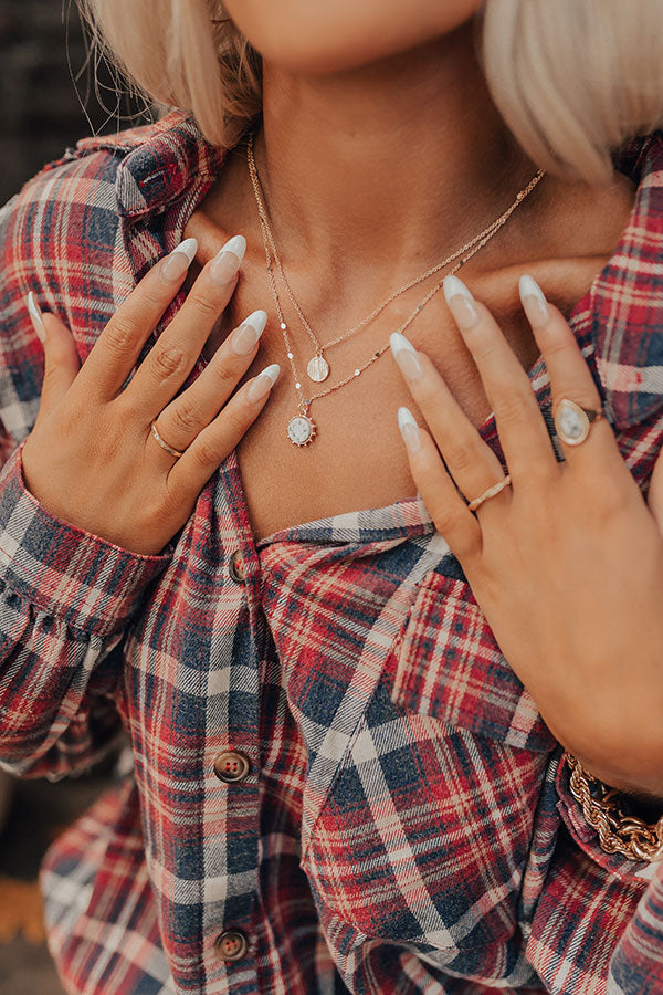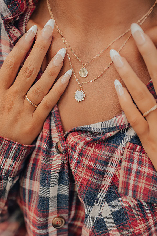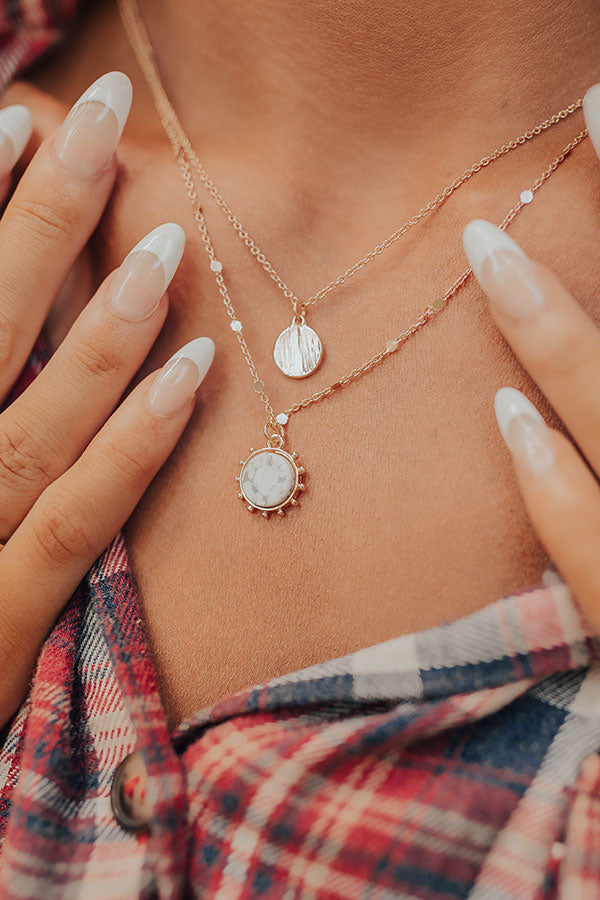Take your look to the next level with our darling gold 'Pennet' necklace featuring two layered dainty chains with a white charm!