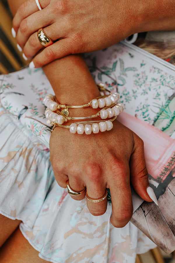 The 'Penny' bracelet features a gold plated copper wire-wrapped bangle adorned with three stone clusters! Stones may vary in size, shape or color. Each bangle sold separately.