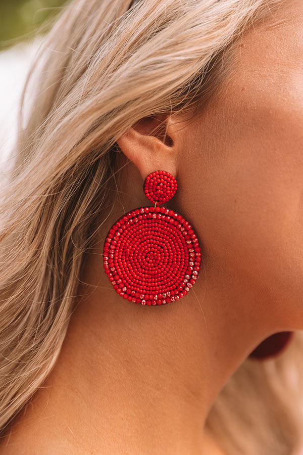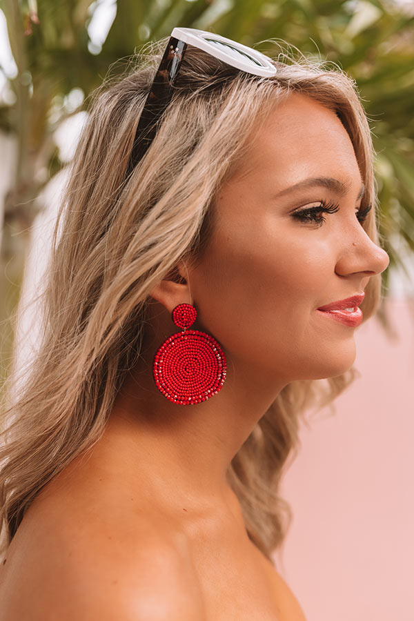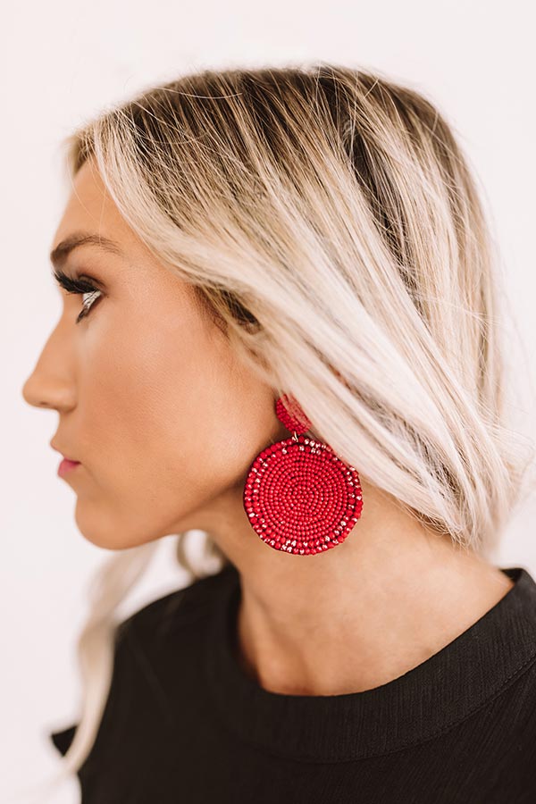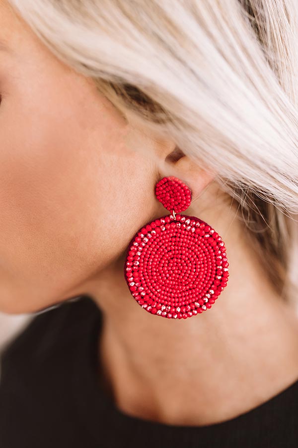 We have no doubt you will have "the perfect day" and the perfect accessory for your OOTD with these statement earrings featuring two large red beaded circles with metallic accents!