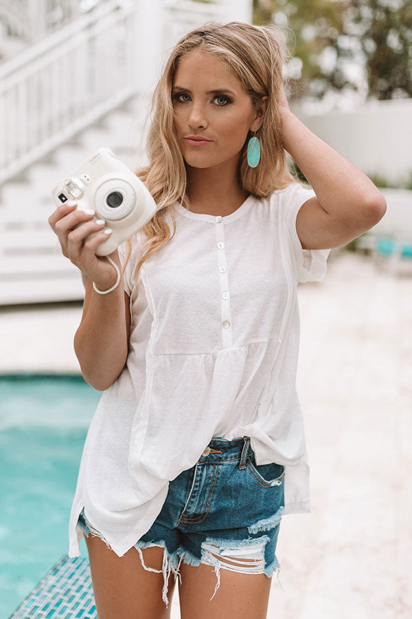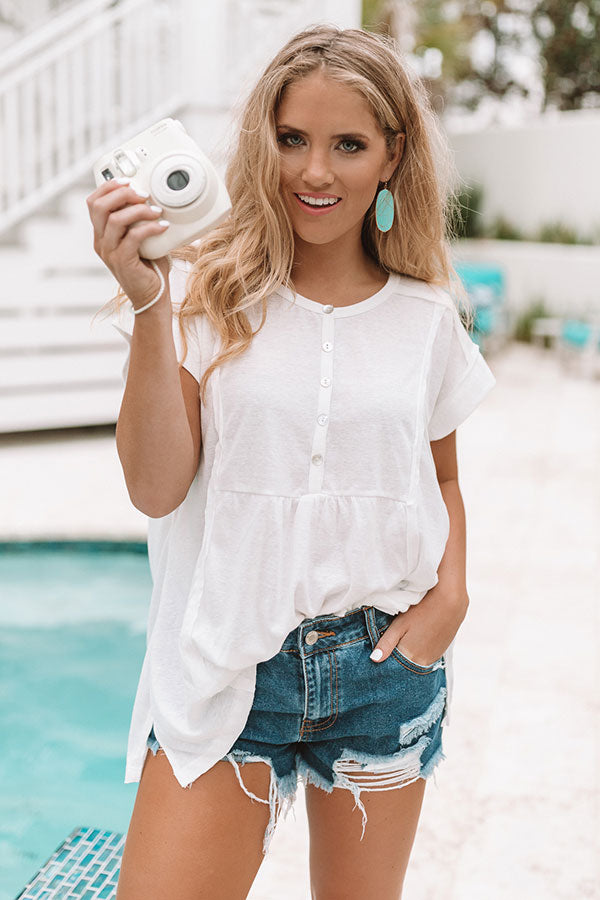 This feminine cotton tee has short sleeves, a faux button-down neckline & a relaxed bodice that is easy to slip on... and go!