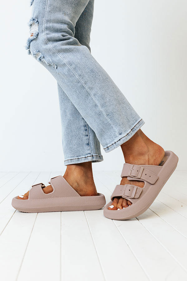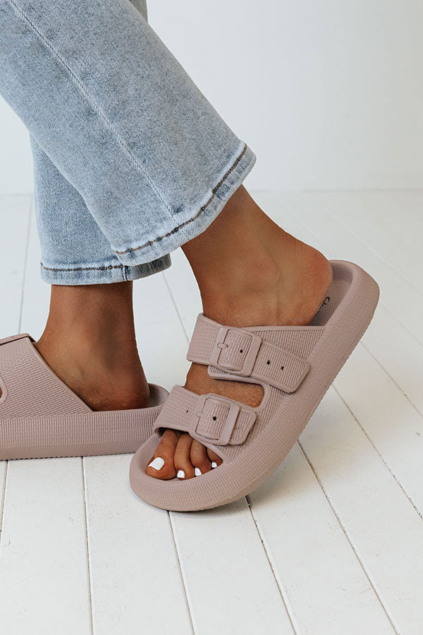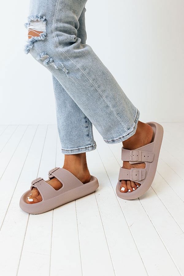 The predicted shoe of the summer, our dusty purple colored 'Perri Sandal' features and ultra padded sole, two over-the-foot straps with buckle detailing, a rounded open toe, and a chunky slip-on silhouette! This sandal runs more true to size.