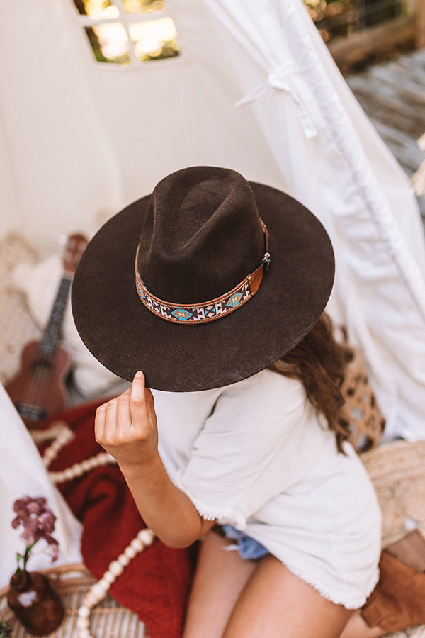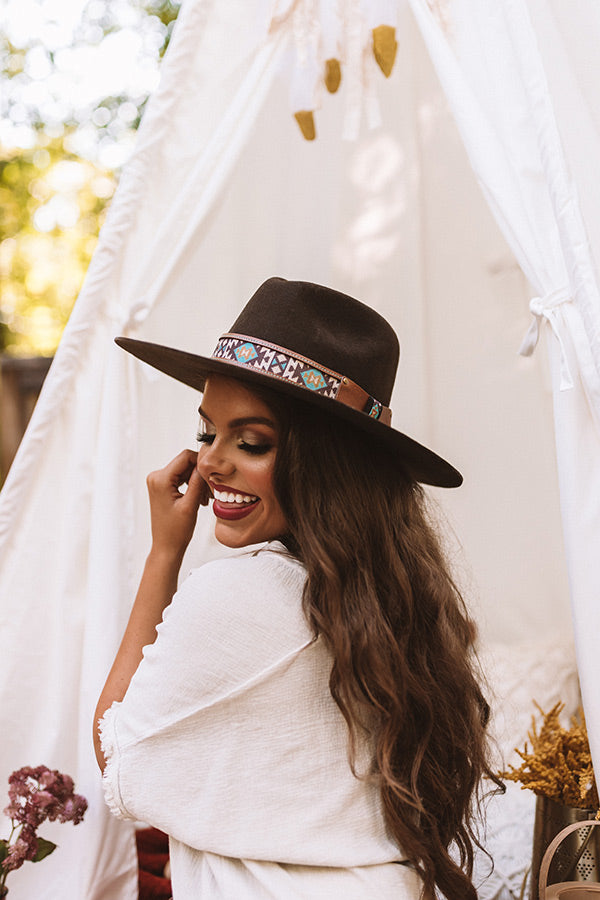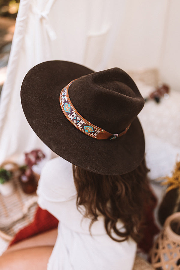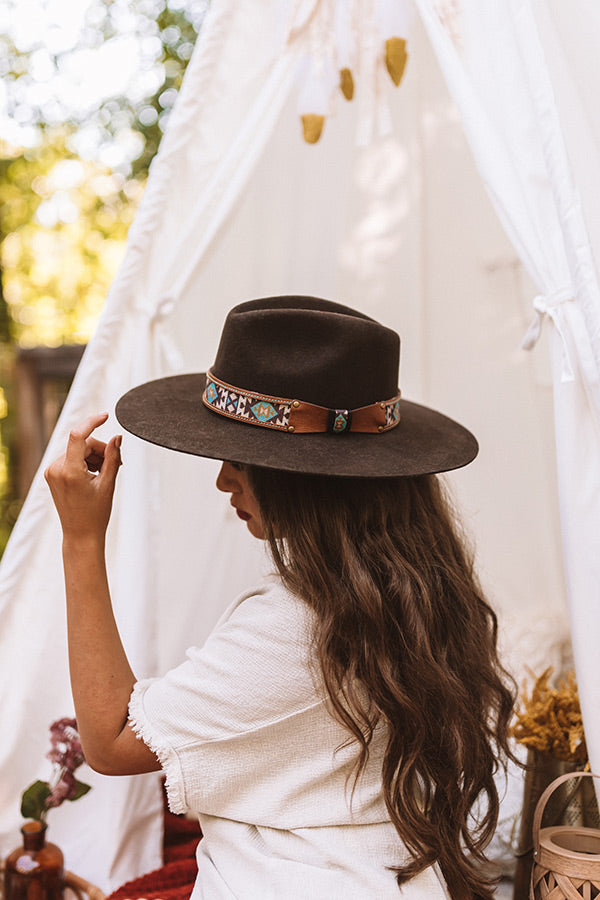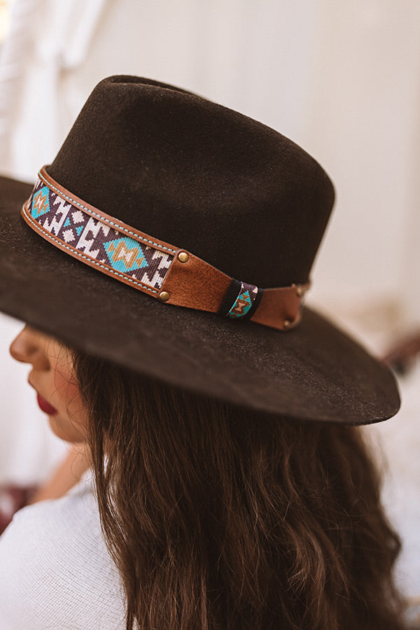 Complete your OOTD in style with our adorable chestnut "Phoenix" fedora featuring lightweight wool material, a wide stiff brim, and a patterned aztec print accent band!