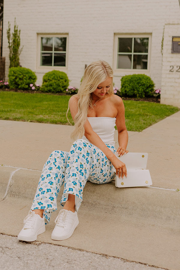The Poppy High Waist Floral Wide Leg Pants in Blue