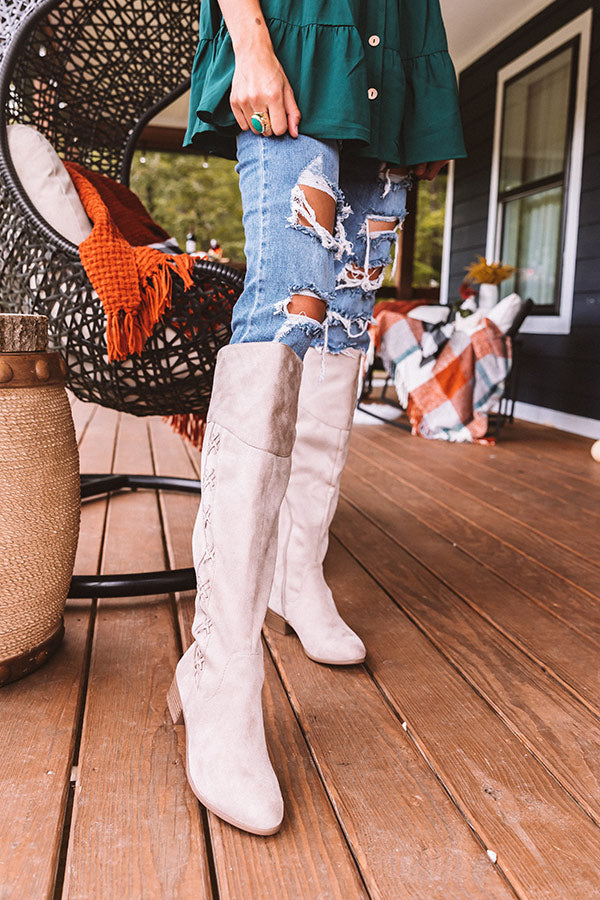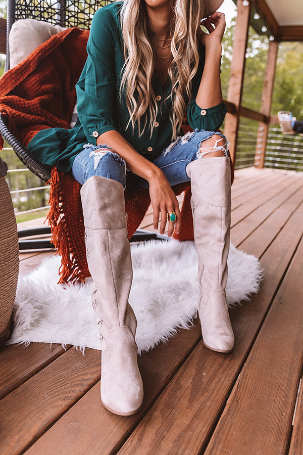 Keep calm, it's boot season! You are sure to love our stunning neutral "Raella" boot featuring soft faux suede material, rounded closed toes, 1.5-inch block heels, inside zip closures, accent crisscrossed stitching down the sides, a 14-inch calf width, and a lightweight knee high silhouette! This boot runs more true to size.