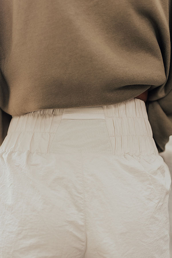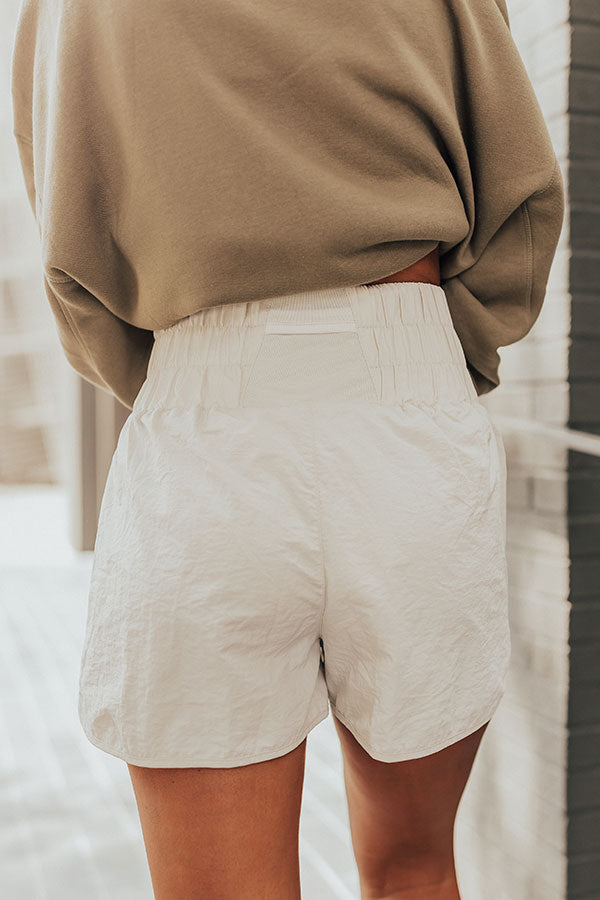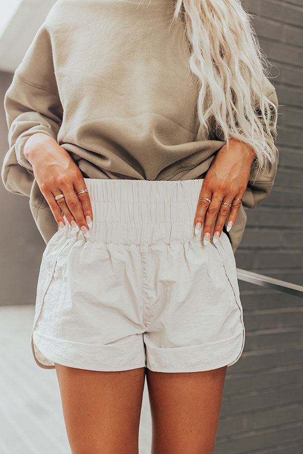 The Rainier High Waist Windbreaker Shorts In Stone