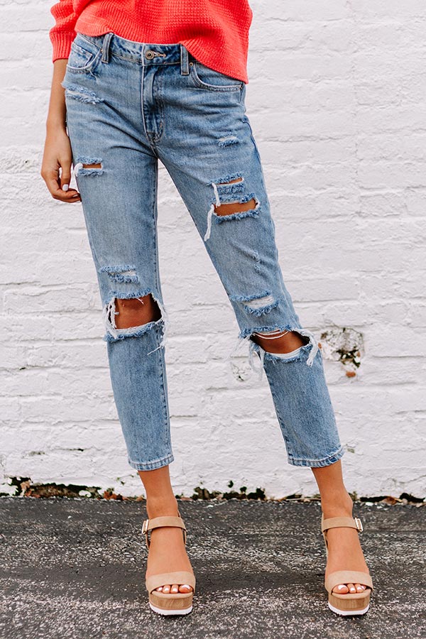 Life is more than just fitting into your jeans, but we believe you will LOVE the feel and look of "The Reece" skinnies with their high waist, destroyed detailing, medium wash color, relaxed silhouette that falls into cropped ankle hems, 5 pocket cut, belt loops, and a hidden zip with a button closure! These trendy bottoms will take your from season to season when you wear with your favorite open toed heel and tank top in the summer and with booties and a sweater in the fall!