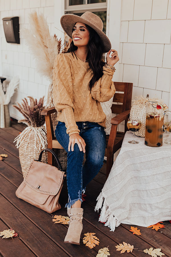 We think now is "the right moment" to add this adorable primrose yellow colored sweater to your cart with its ultra soft lightweight tight knit material, wide diagonal ribbed texturing, large pompom accents, a high rounded neckline, long loose sleeves with fitted forearm cuffs, and a slouched silhouette that ends in a straight hemline! Measurements