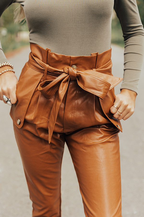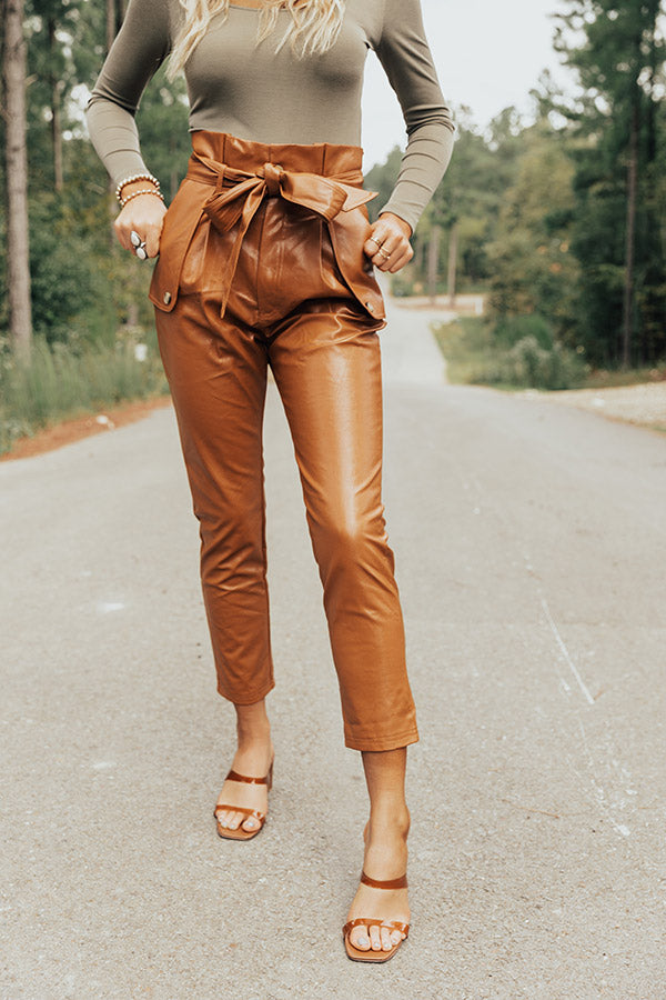 The Roma High Waist Faux Leather Pants In Camel