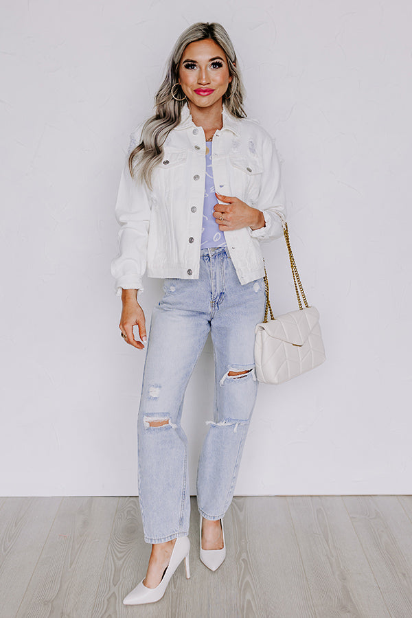 - Get a look that is sure to be envied with this trendy denim jacket! From breezy summer days to crisp fall mornings, this stylish piece is ideal for adding a touch of edginess to your transitional style!