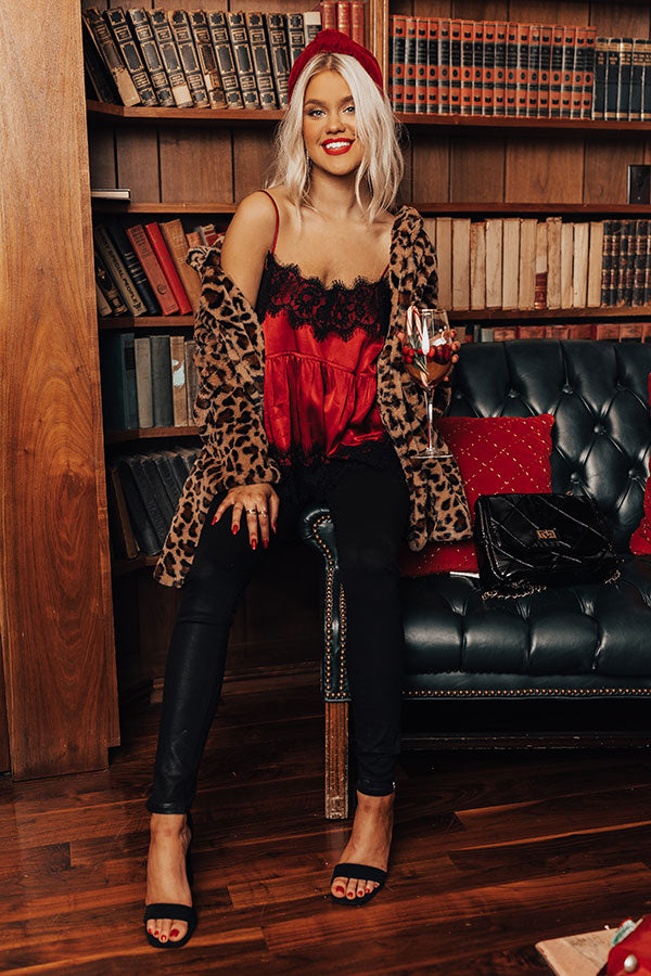 The Sansa Lace Trim Tank In Red