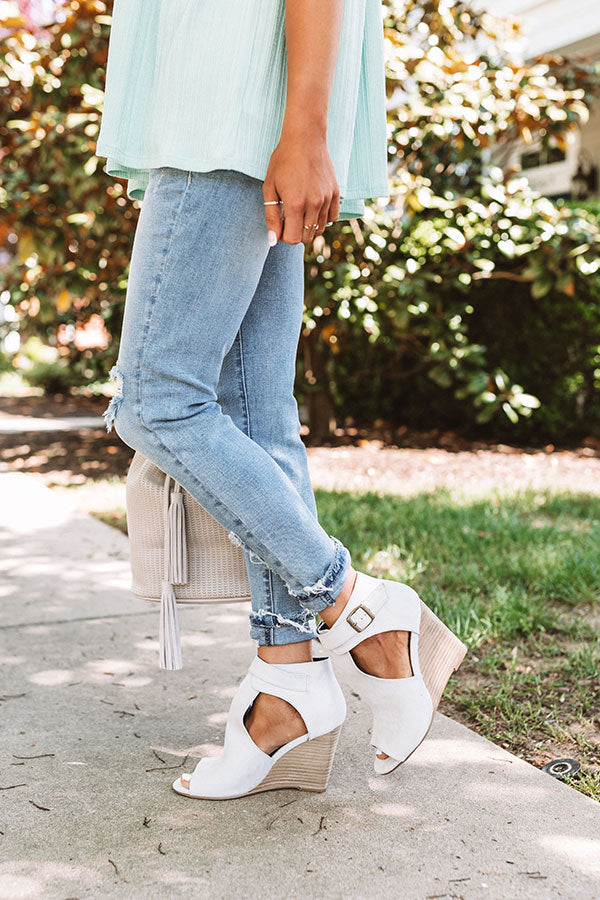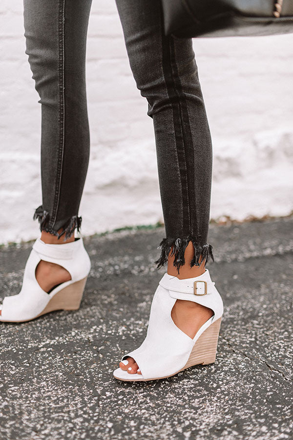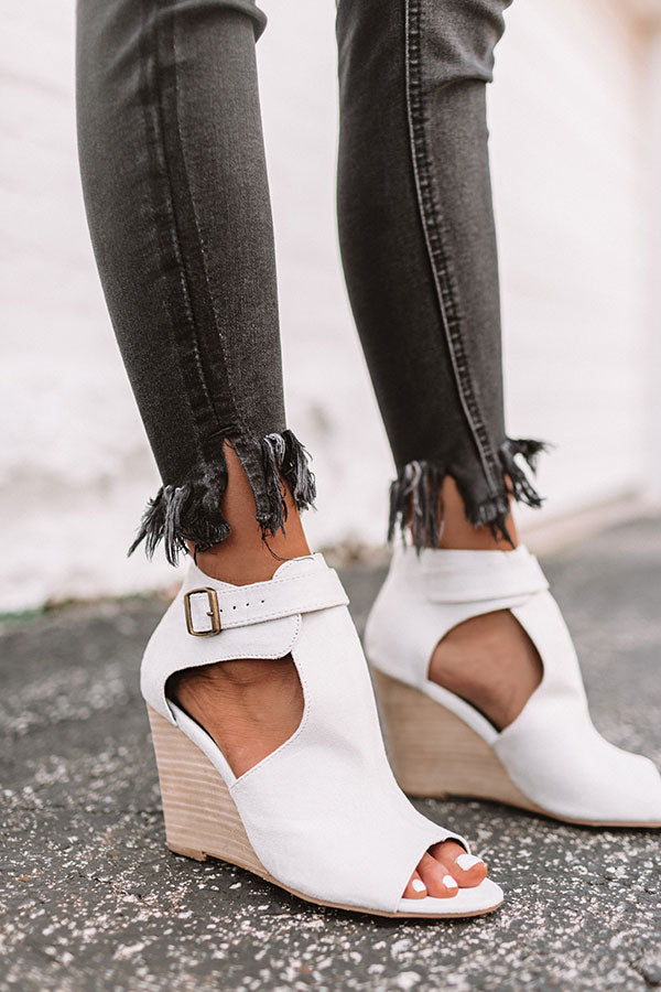 The Scout Faux Suede Peep Toe Wedge in Stone